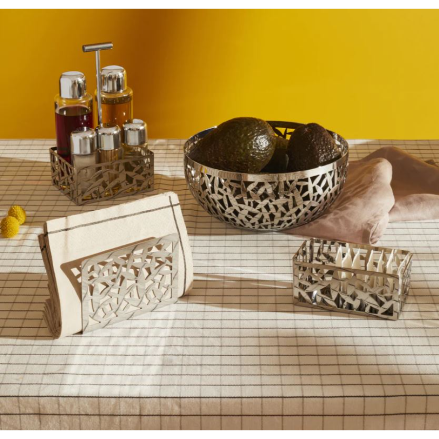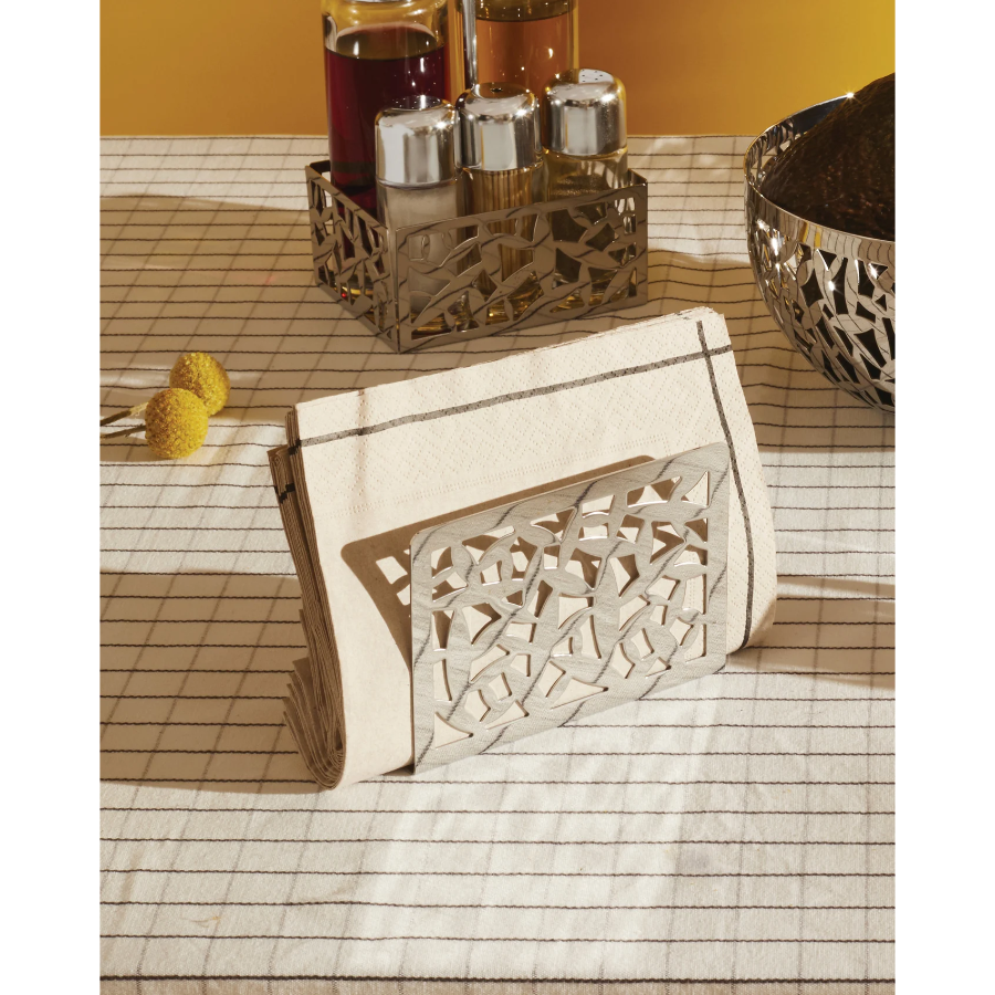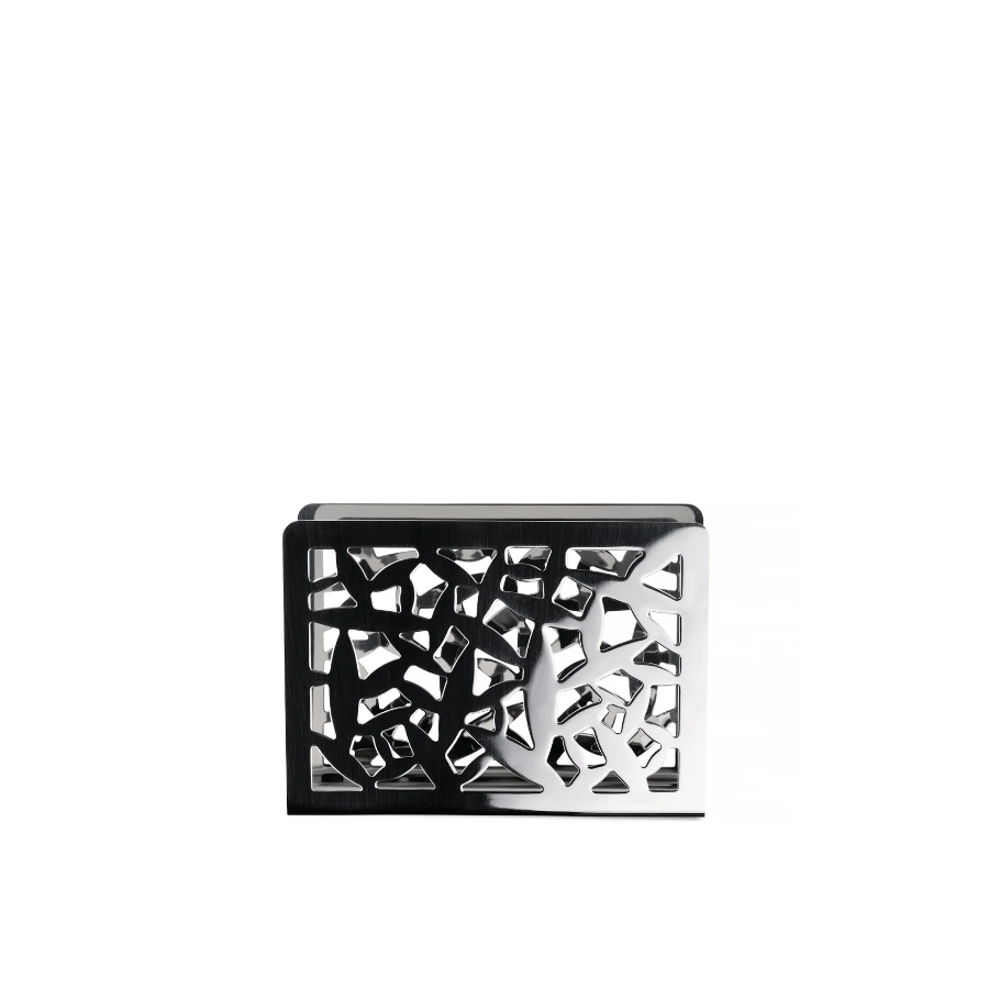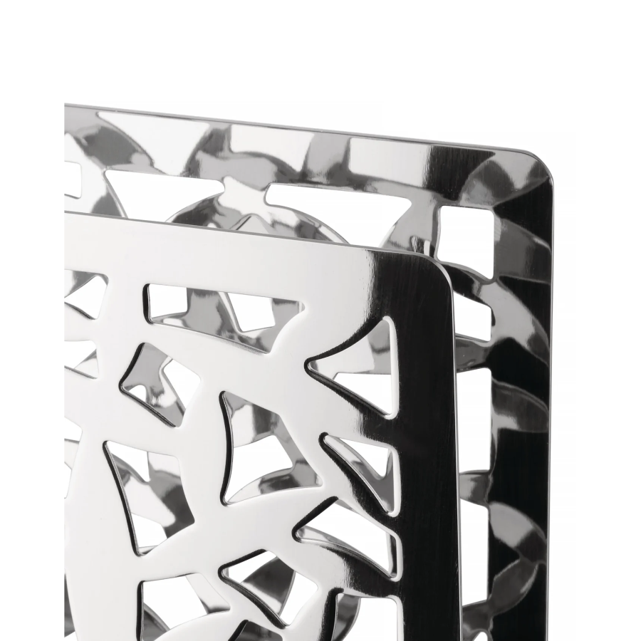 Designer: Marta Sansoni . Open-work napkin holder in 18/10 stainless steel. Height 8.50cm x Length 12cm x Width 3cm.
