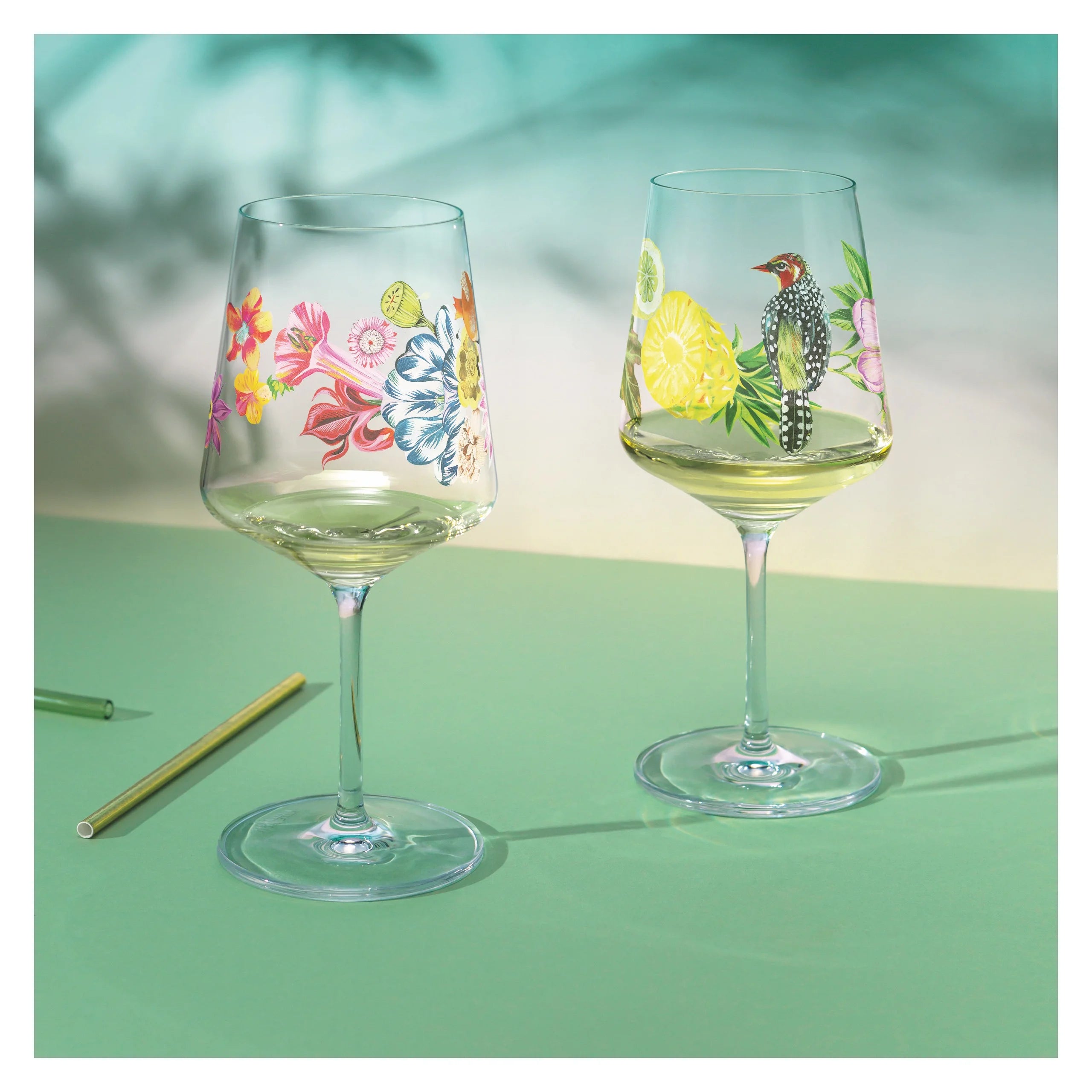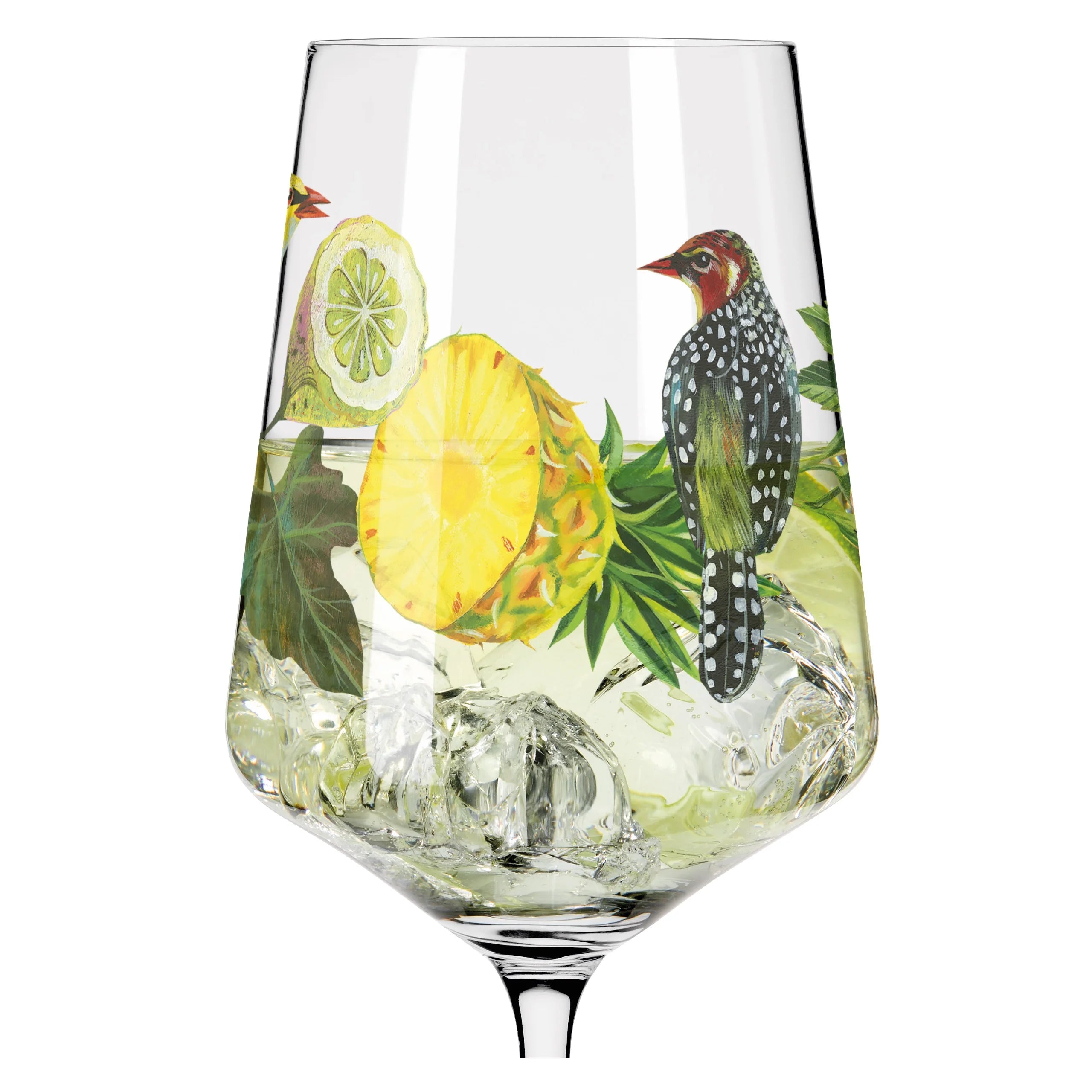 The oriole on the lemon branch: in a kaleidoscope of botanical treasures, the décor creates an allegory of summer that becomes only real through this unique cocktail of colors and scents. Aperitif glass for hugo, cocktails, aperitifs, wine, spritzer, punch or juice.