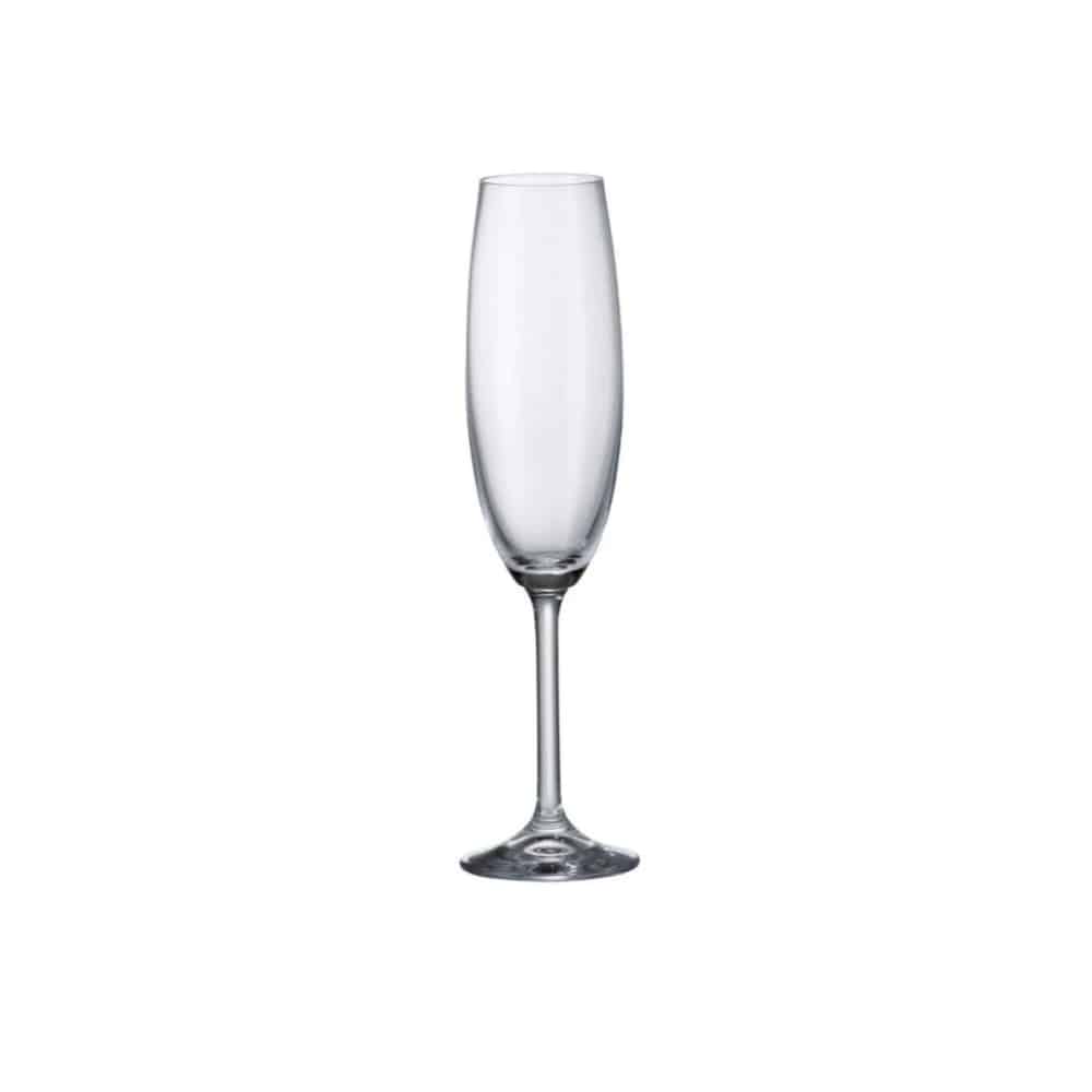 Bohemia Crystal Colibri champagne glasses are quality glasses for every occasion. Their simple design and quality workmanship will delight every practical person. The glass stands on a tall slender stem and rings perfectly during a toast. They are made of durable lead-free crystal and are dishwasher safe.