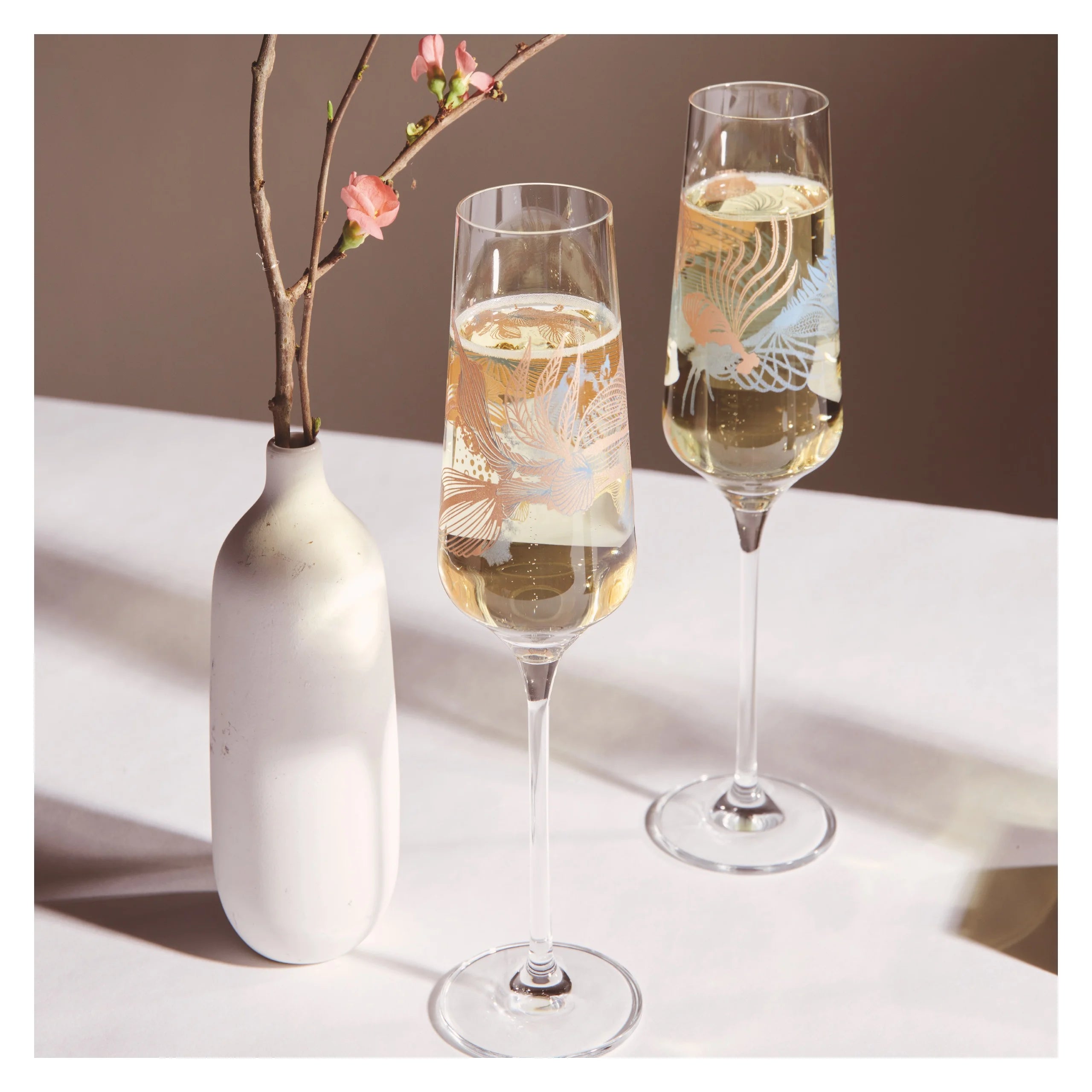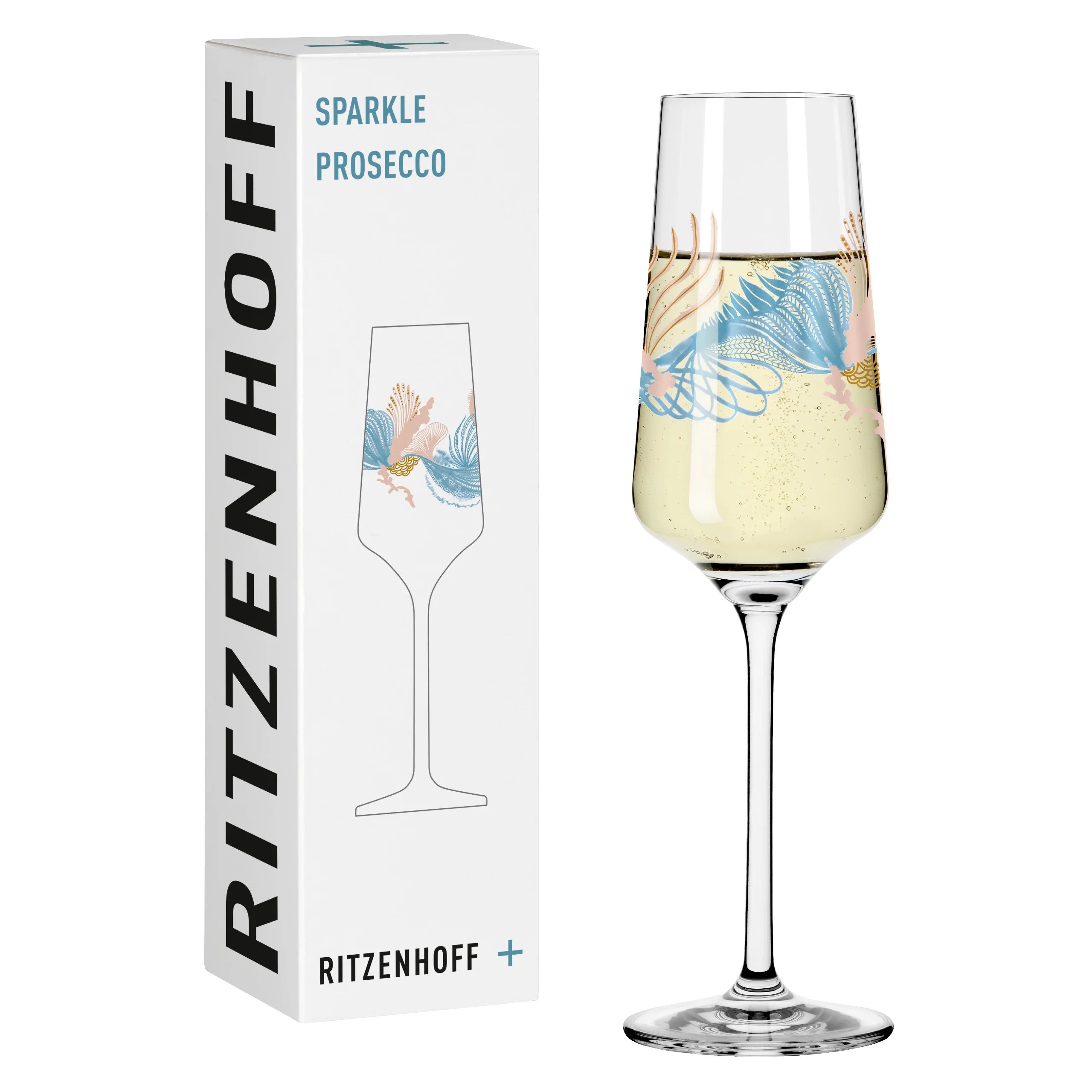 The décor shows a wonderful underwater world, mixes the delicate beauty of spring with the depths of the ocean and invites you to a Prosecco with friends at the pool or beach.Filigree Prosecco glass with subtle décor, is also suitable for sparkling wine or champagne.
