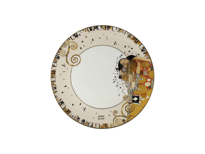 The artworks "The Expectation" and "The Fulfilment" from Gustav Klimt interpret a part of the work "The Tree of Life" in a new artistic form. The traditional house Goebel has newly interpreted also this historic paragons. Carefully handcrafted with high value and aesthetic demand. Icons of modern living.Plate - Fulfillment