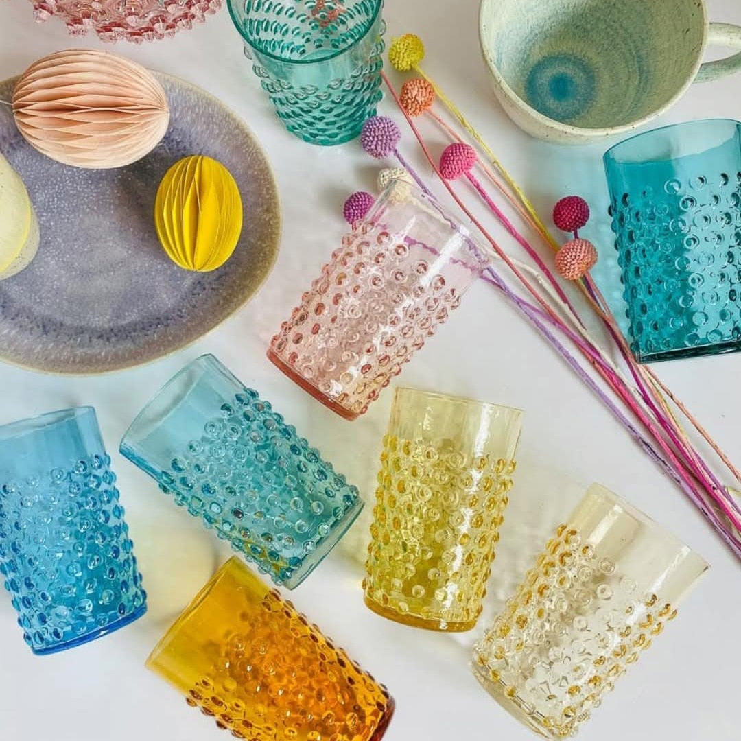 The hobnail glass is a prime example of a modern twist on a classic Bohemian glass tradition. They are playful yet elegant with their minimalist hobnail pattern and give a tasteful edge to any dining table. Furthermore, they are practical and as easy to wash as they are easy on the eyes.