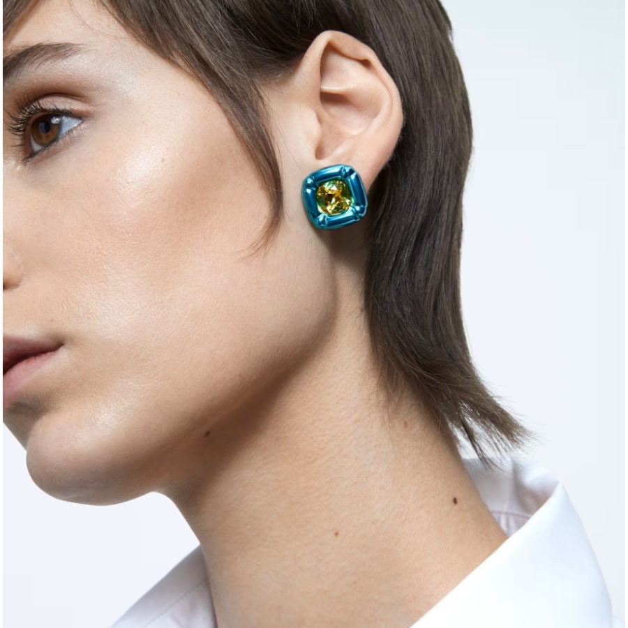 Swarovski Dulcis Stud Earrings Cushion Cut, Blue