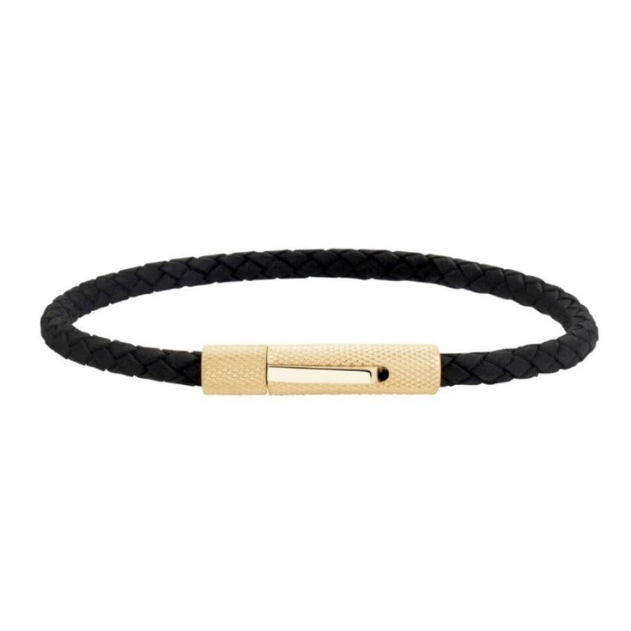 ARZ Bracelet 4mm Gold Steel Black Leather