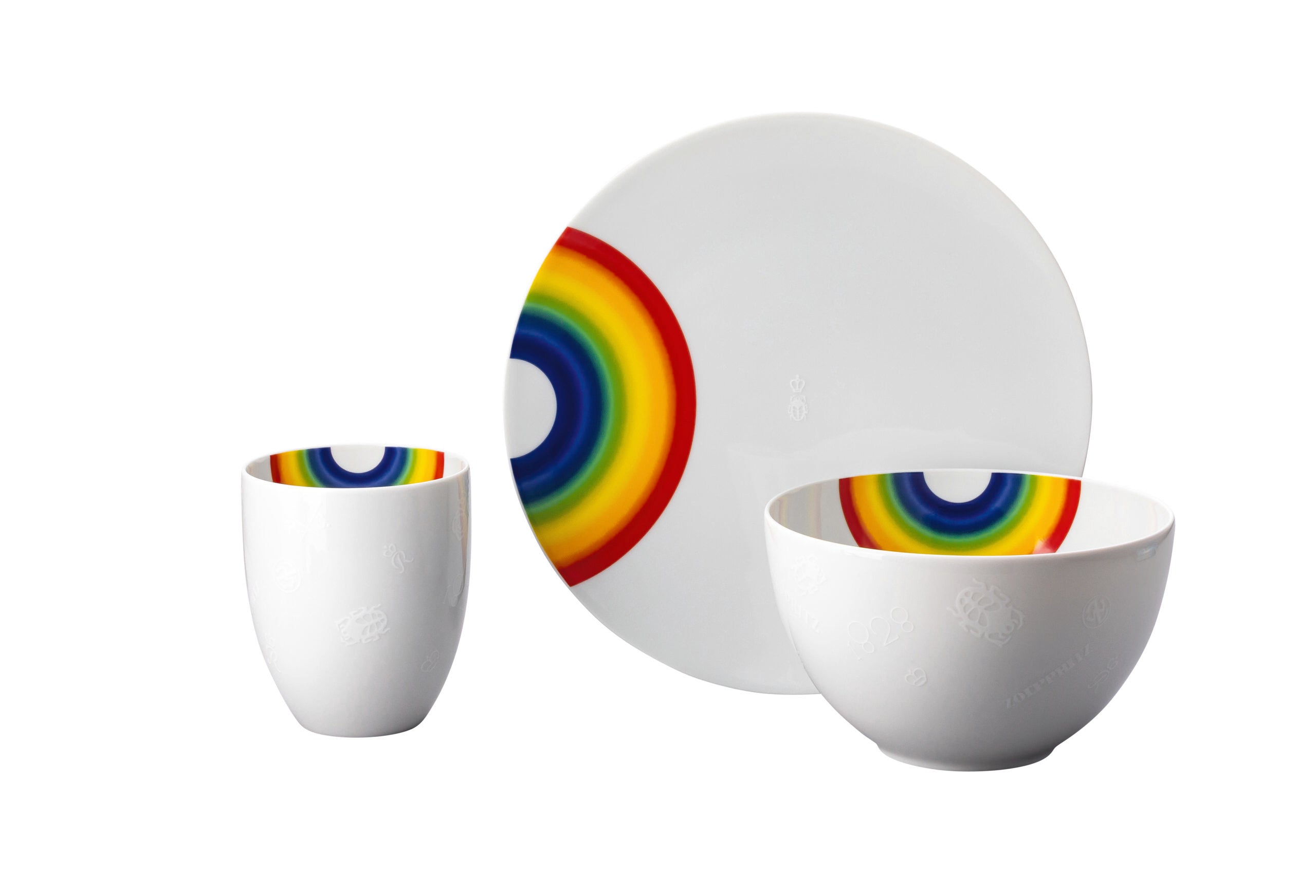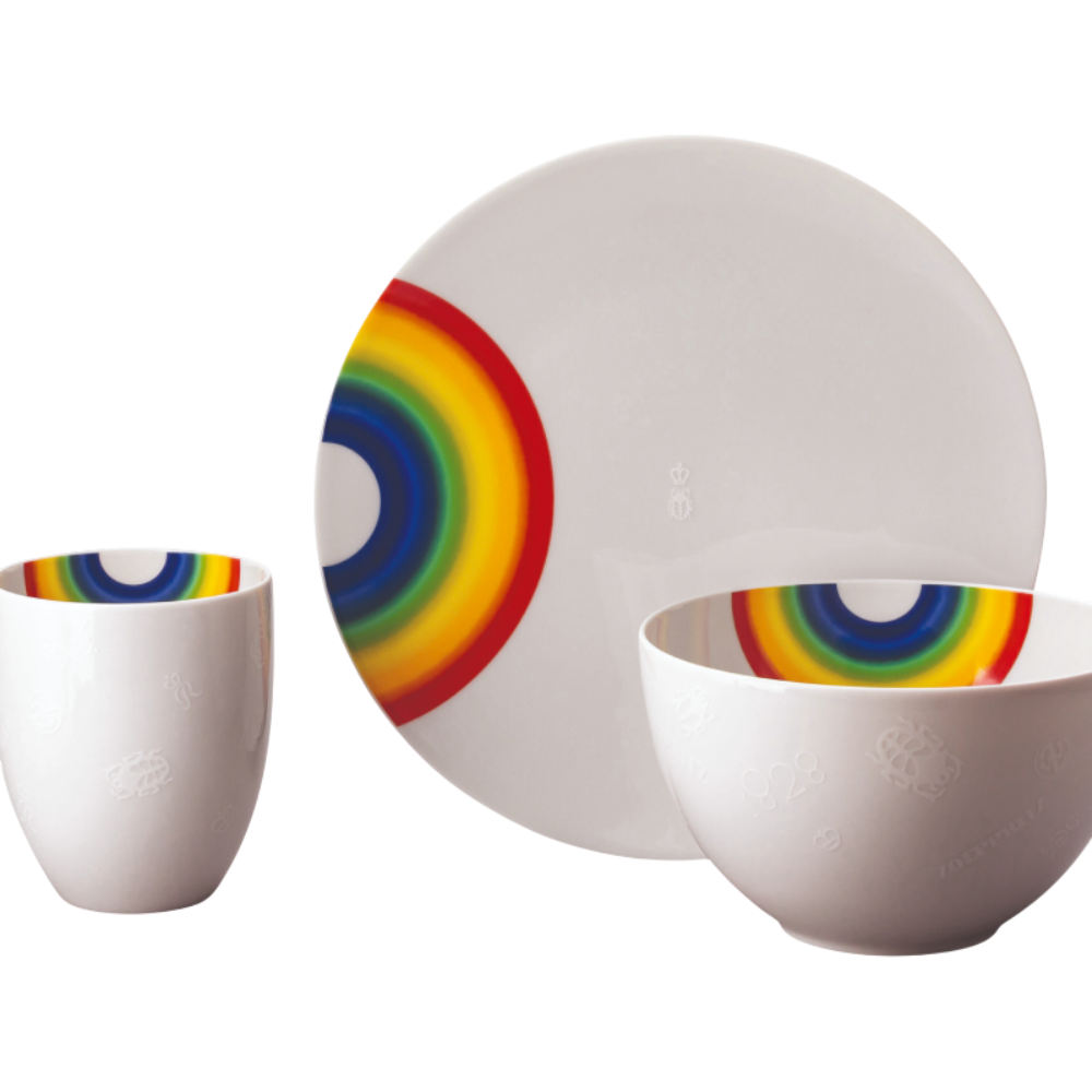 Set comprising of 3 pieces in a gift box, consisting of:Breakfast plate 22 cm, Multifunctional bowl 15 cm, Cup without handle.With this décor the colours are melted into the glaze at 1000 degrees C. Here the glaze softens and the décor sinks into it, thus making colour and luminosity indestructible. It is scratch- and wear-resistant. However, gold decors are not totally scratch resistant by virtue of their natural material properties. This décor was tested by the Rosenthal Institute for material technology (IWT). It is dishwasher safe.This item can safely be used in the microwave.