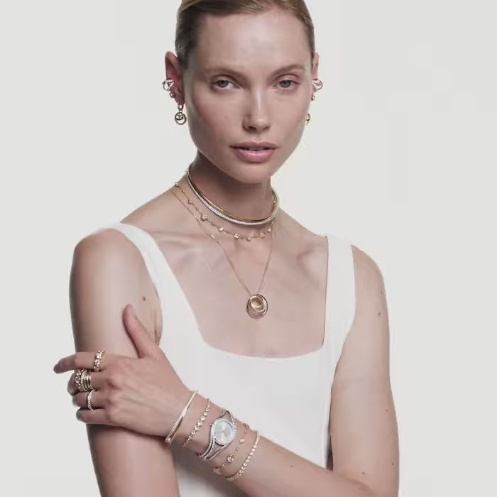 Crafted with a spiralling silhouette, this Hyperbola pendant combines the classic glow of gold-tone plating with Swarovski’s renowned mastery of light. The hypnotic design is accentuated with Swarovski Zirconia in varying sizes, while the sleek metalwork provides all-day sophistication. Wear it with matching earrings or a ring to maximize the effect.