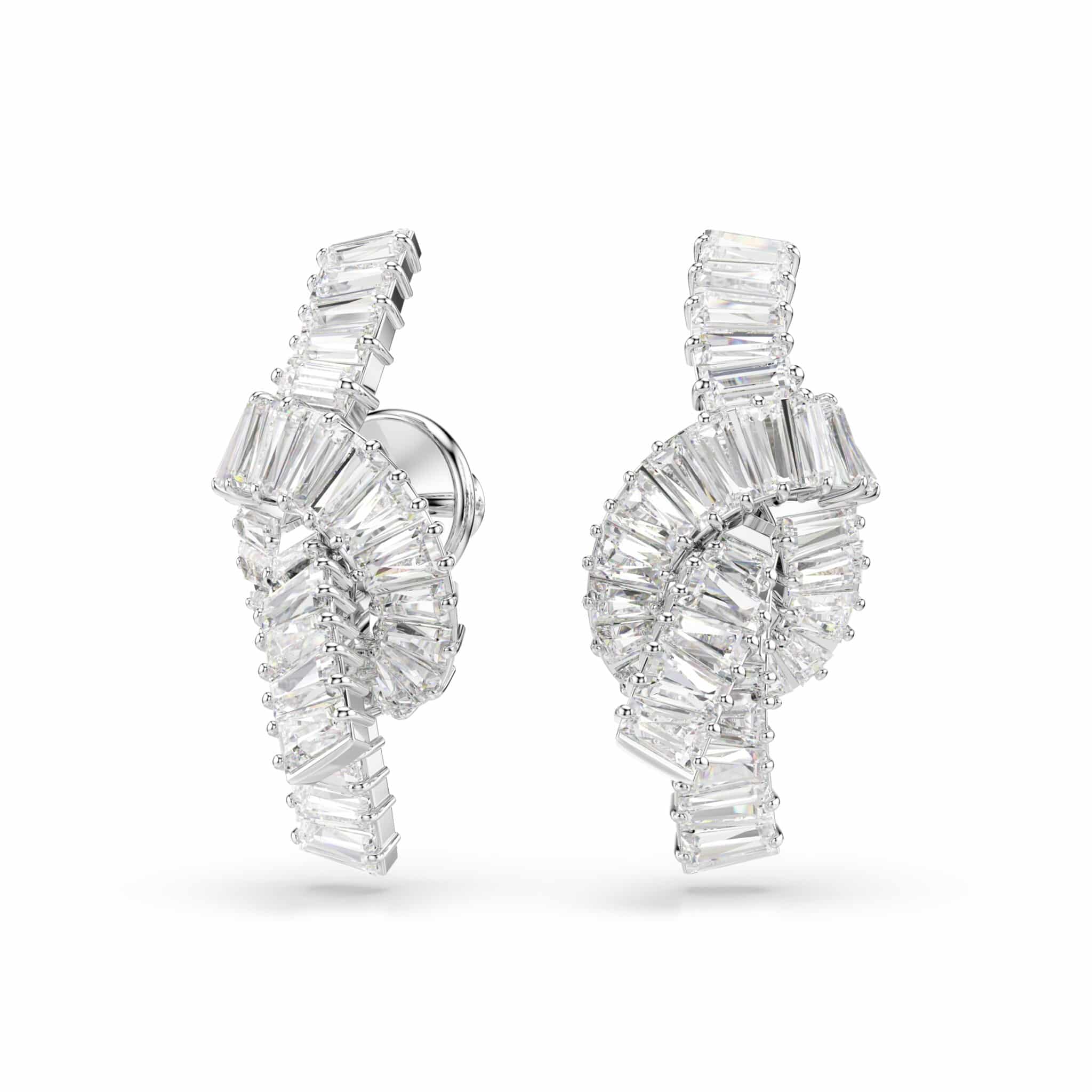 Swarovski Matrix Earrings, Baguette Cut, Knot, White, Rhodium Plated