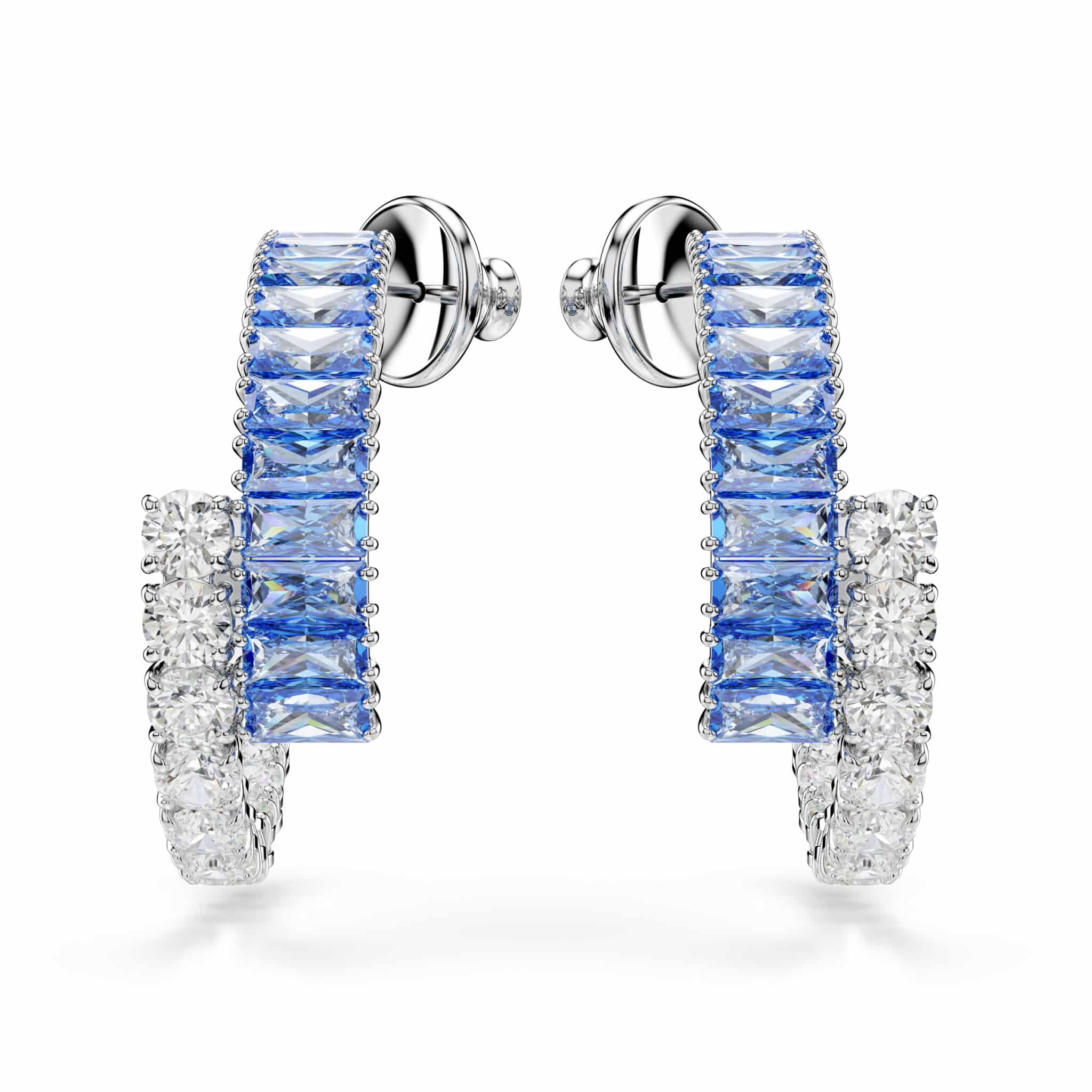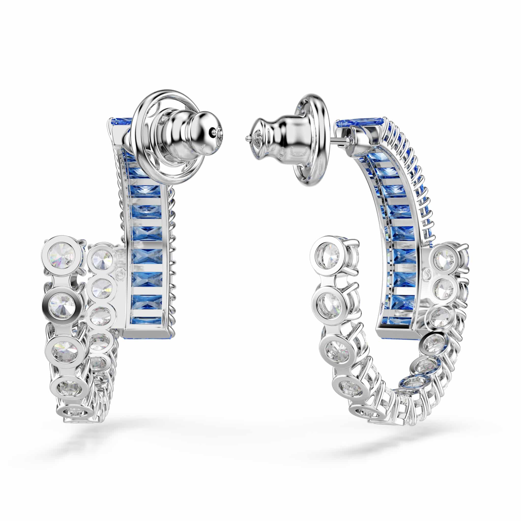 Swarovski Matrix Hoop Earrings, Mixed Cuts, Blue, Rhodium Plated