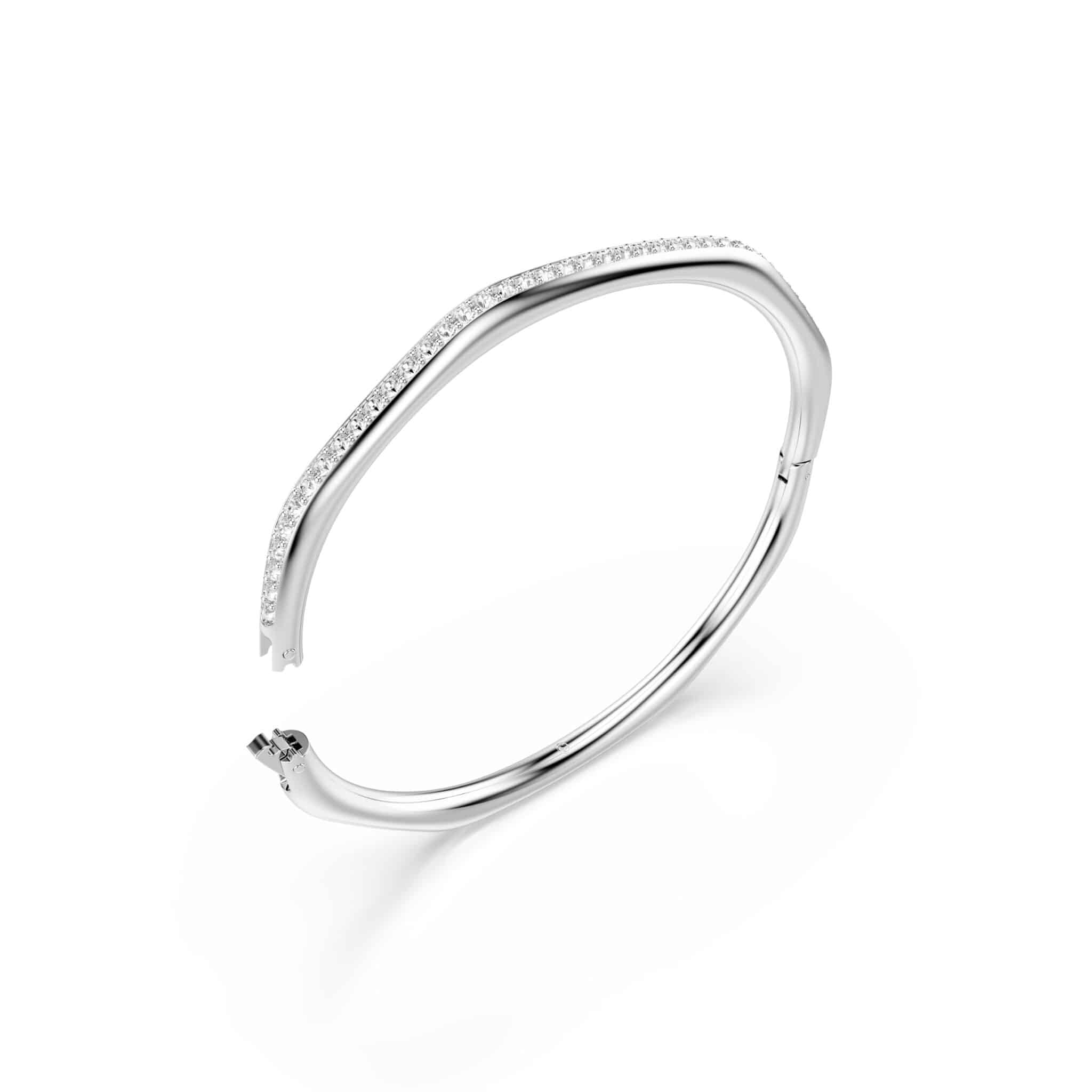 Swarovski Dextera Bangle, Octagon Shape, Round Cut, White, Rhodium Plated