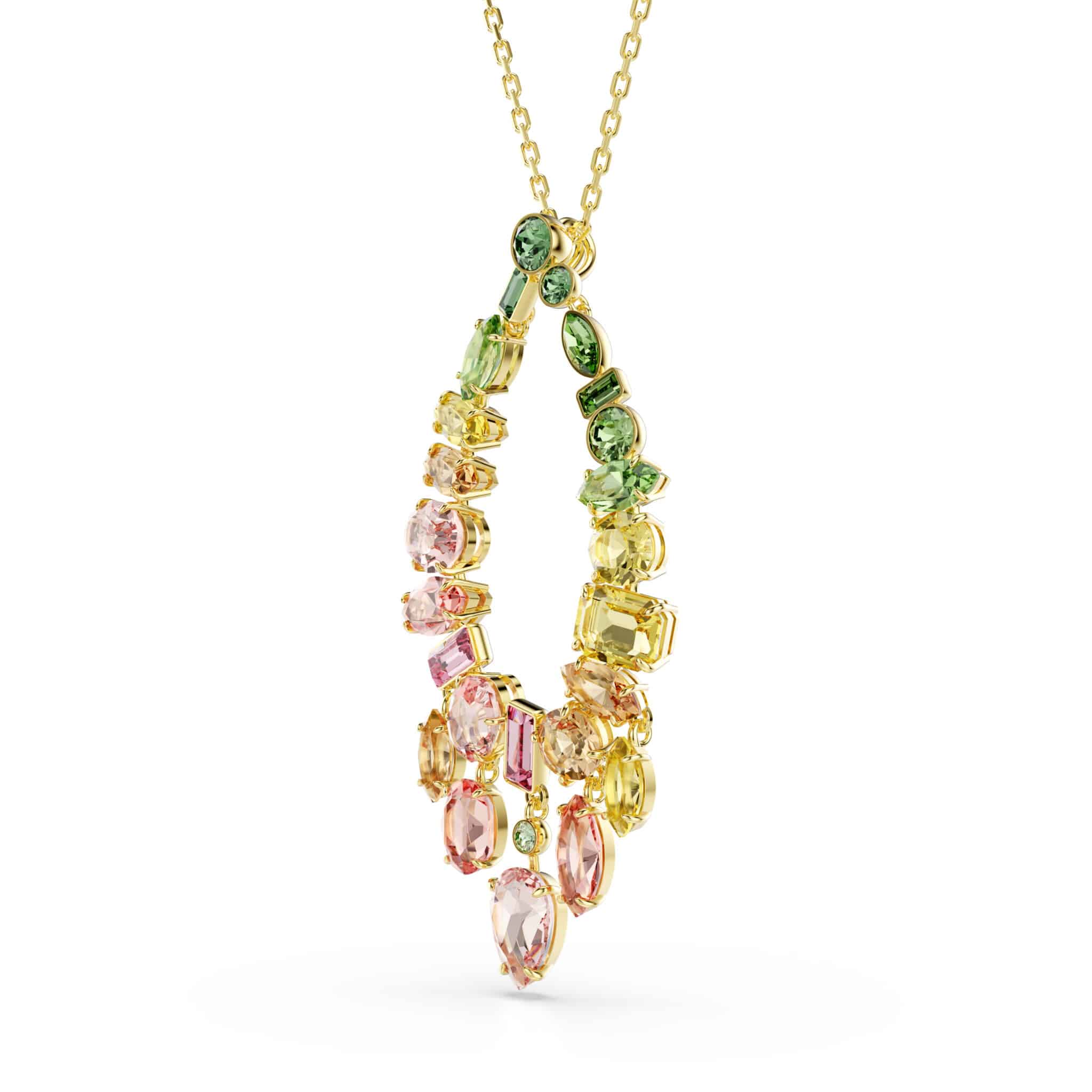 Swarovski Gema Pendant, Mixed cuts, Multicolored, Gold-tone plated