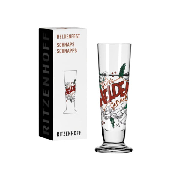 Heroes don't need capes, they need the Ritzenhoff Heldenfest shot glass by Henrike Stein. After a day by the fire, even the barbecue heroes need a break. The décor summons a joint toast with its traditional comic strip style. Decorated with extraordinary motifs by Henrike Stein. She skilfully complements her illustrative work for Ritzenhoff with trendy contrasts, which she stages in rich motifs of shape and colour. Made in Germany