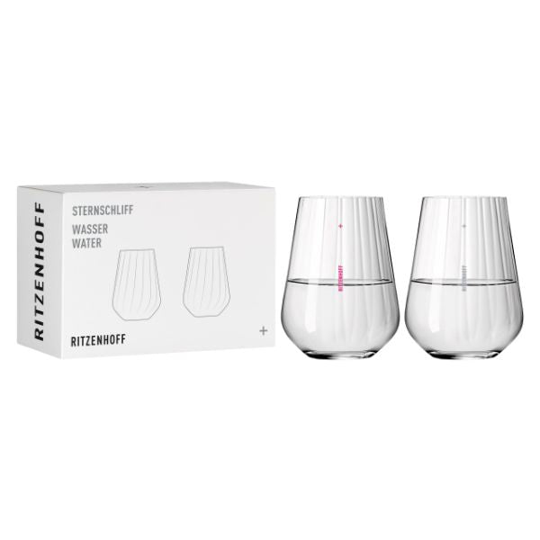 Pure form language - precise in detail: the water glass set is elaborately worked with an internal relief structure and creates an interplay of light and shadow.