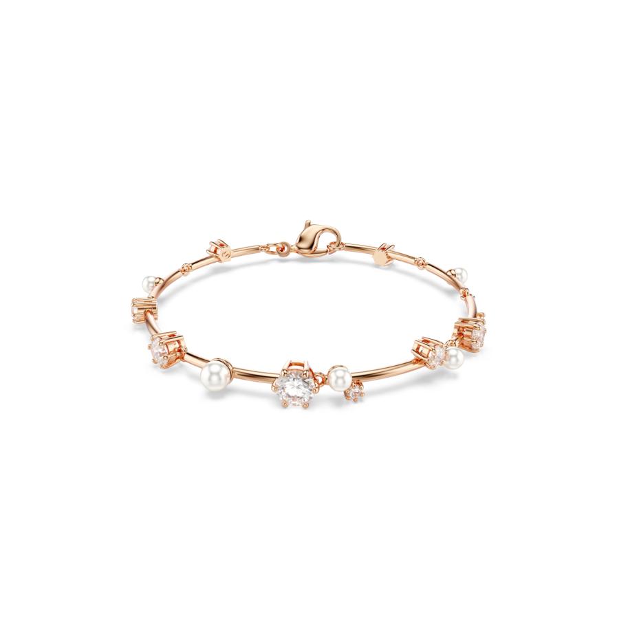 Swarovski Constella Tennis Bracelet, Crystal Pearl, Round Cuts, Rose Gold Plated