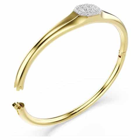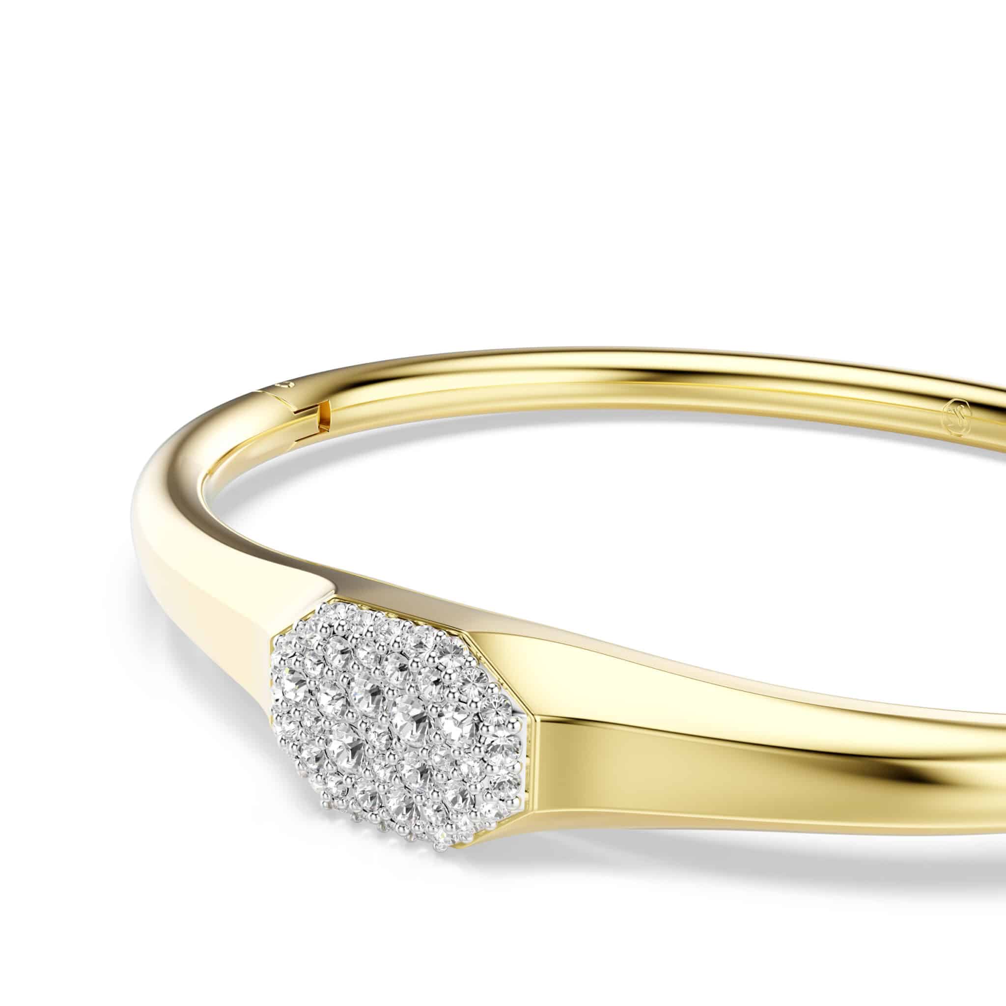 This slender Dextera bangle is infused with elegance and energy. The gold-tone plated silhouette features varying sizes of round crystals, expertly set in an octagonal formation using Swarovski’s rhodium flash technique. Completed with a Wonderclick closure, it’s a go-to piece of jewelry that can effortlessly transition from day to night. Wear it alongside the matching midi-ring for maximum radiance.