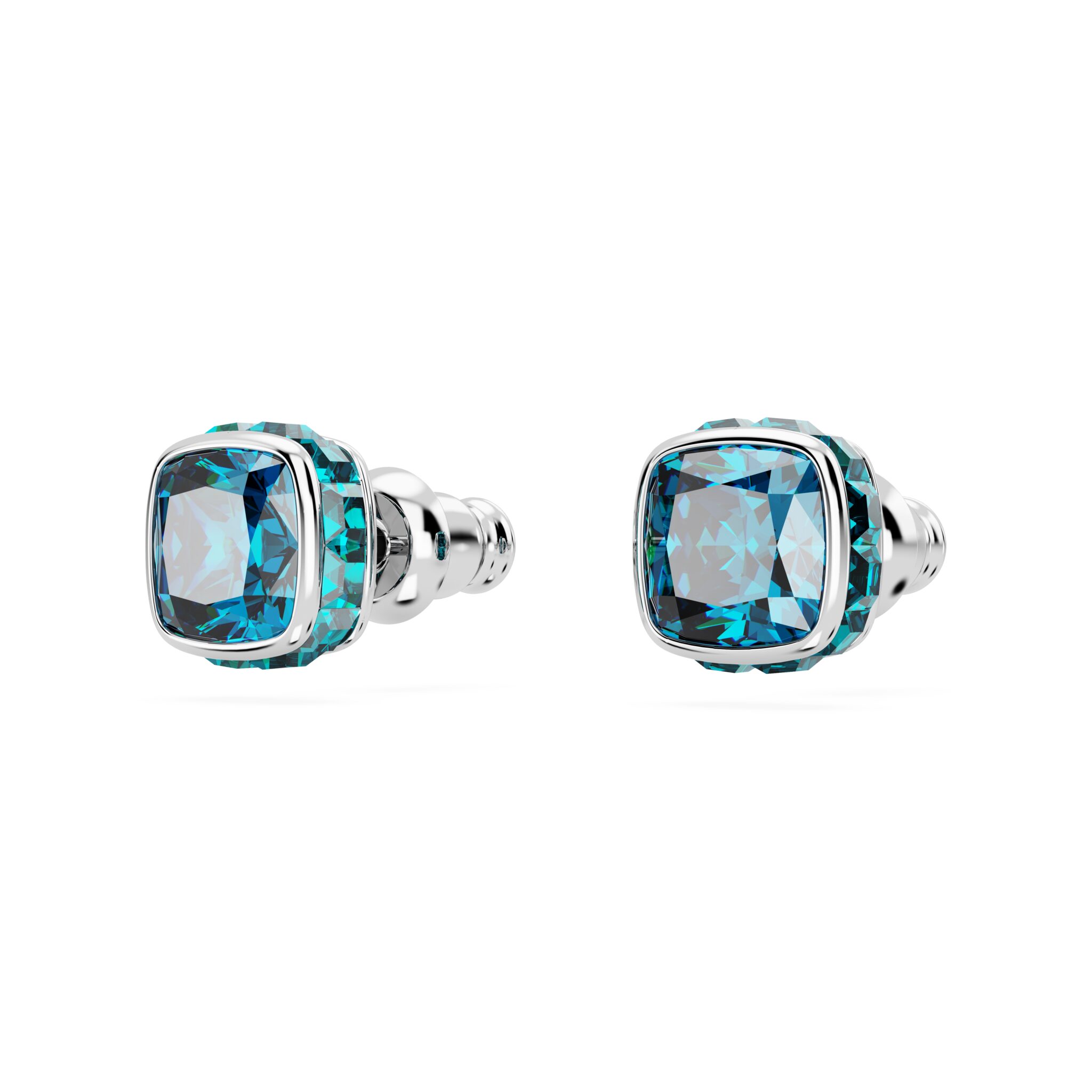 Swarovski Birthstone Stud Earrings, Square Cut, December, Blue , Rhodium Plated