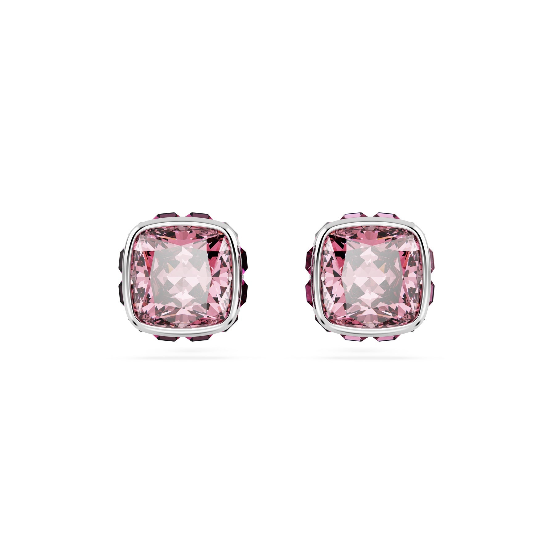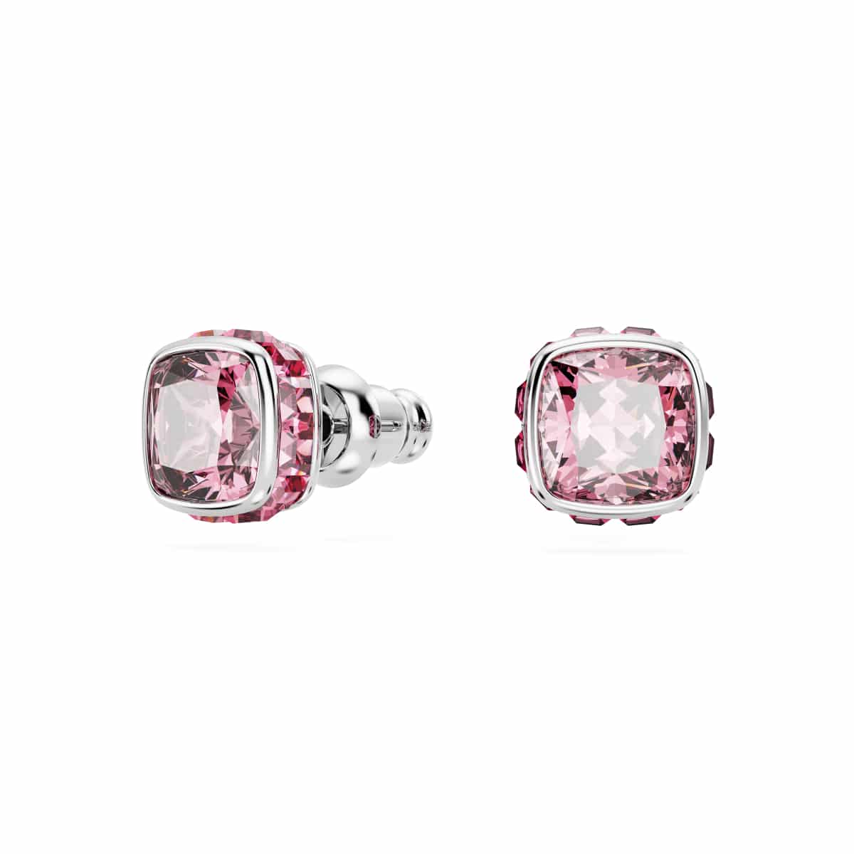 Swarovski Birthstone Stud Earrings, Square Cut, October, Pink, Rhodium Plated