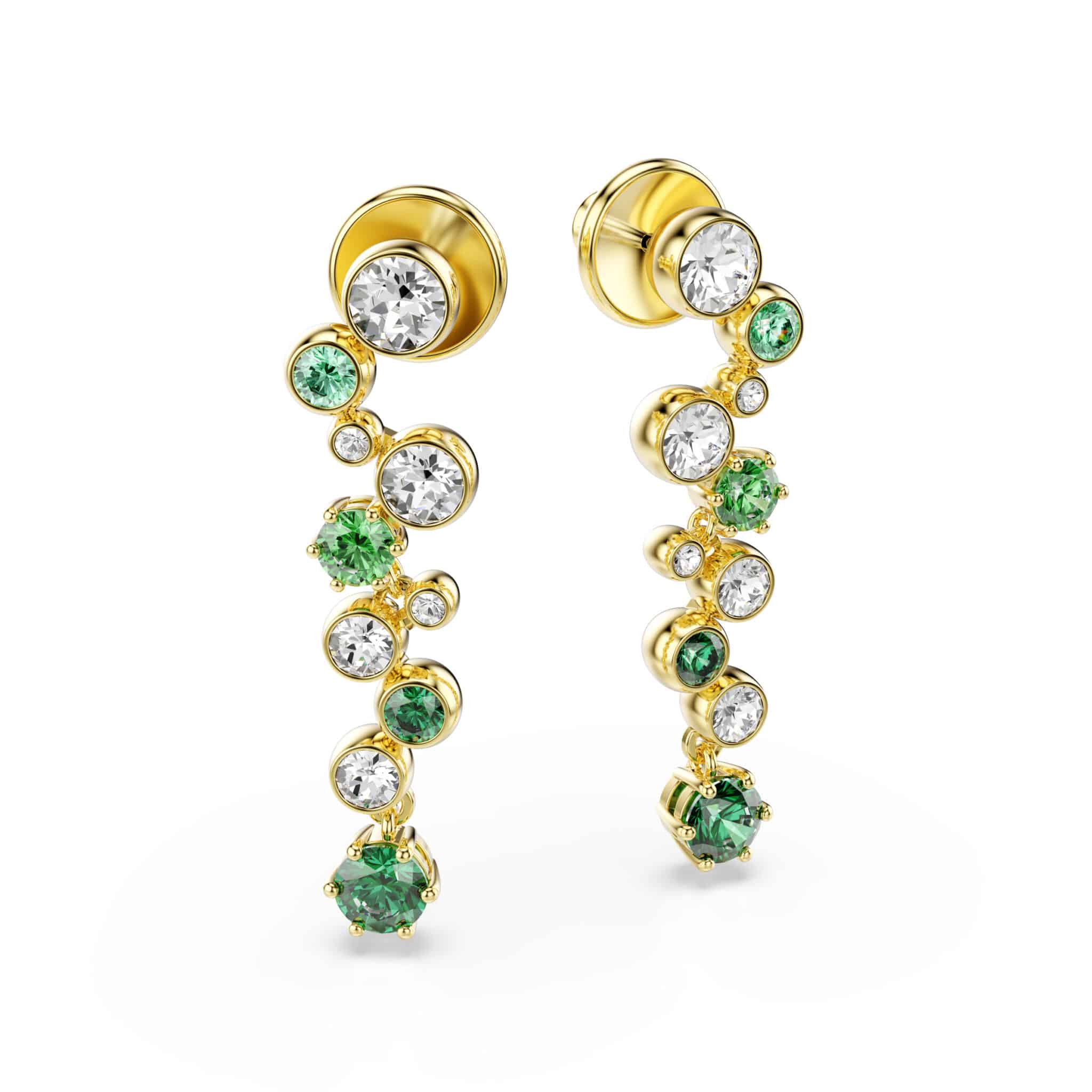 These starry Constella earrings are a unique choice for vivid self-expression. The gold-tone plated strands feature clear crystals and green Swarovski Zirconia in various sizes and shades, each presented in a prong or bezel setting. Wear them alongside the matching Constella necklace to maximize the light and color in your wardrobe.