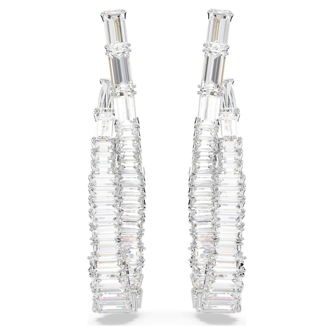 Inspired by the shape of an infinity motif, these striking Hyperbola earrings exude endless beauty. Each rhodium-plated piece is crafted with a slender twist and adorned with an array of clear Swarovski Zirconia in mixed cuts. A graceful and eye-catching way to elevate your evening style. Size: 4.4 x 0.7 cm.