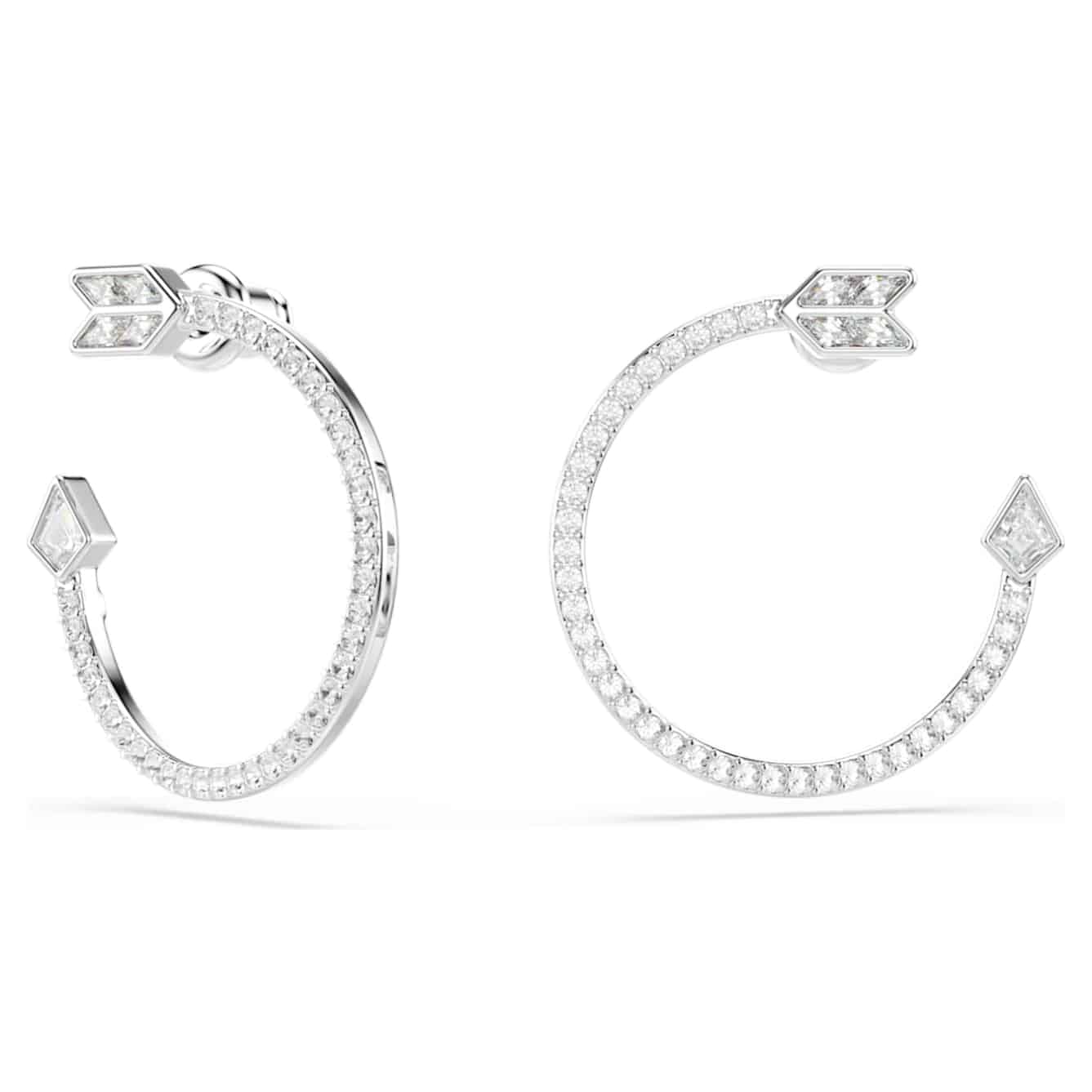 Swarovski Idyllia Hoop Earrings, Mixed cuts, Arrow, White, Rhodium plated