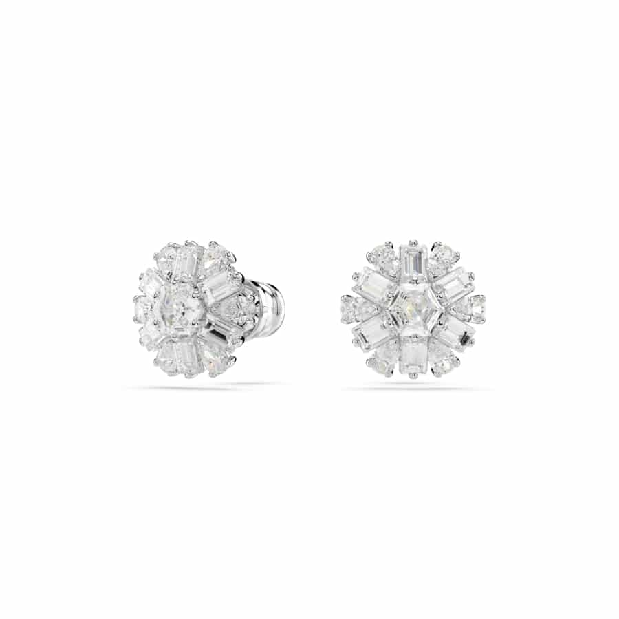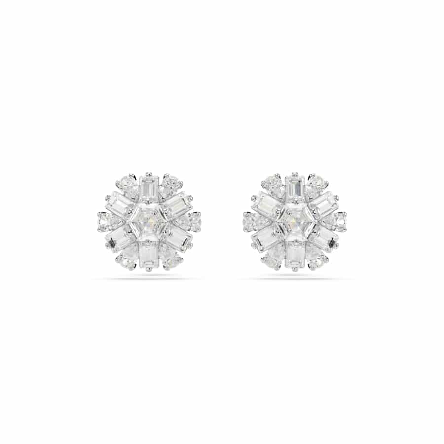 Swarovski Idyllia Stud Earrings, Mixed Cuts, Snowflake, White, Rhodium Plated