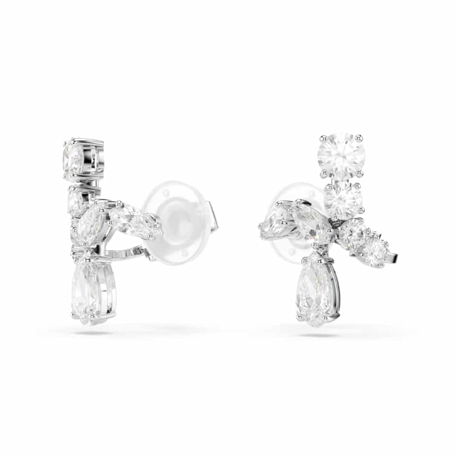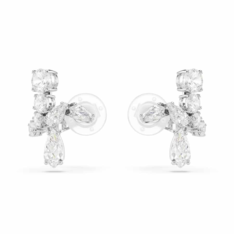 Swarovski Matrix Clip Earrings, Mixed Cuts, White, Rhodium Plated