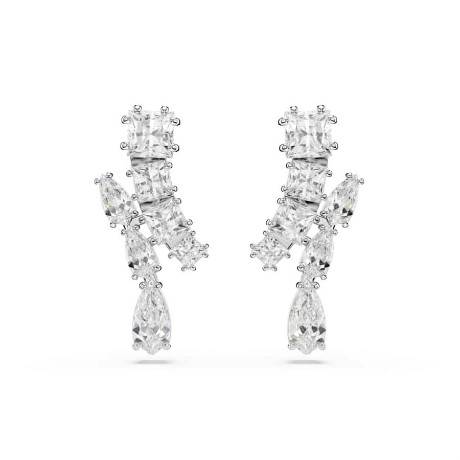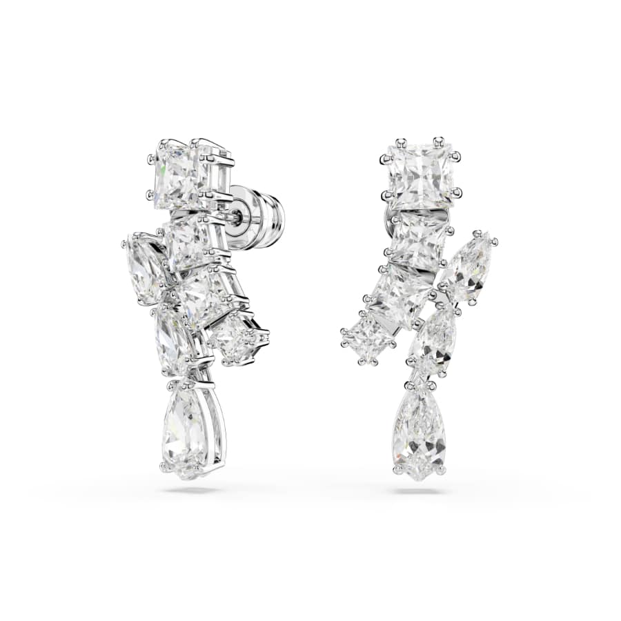 Swarovski Matrix Drop Earrings, Mixed Cuts, White, Rhodium Plated