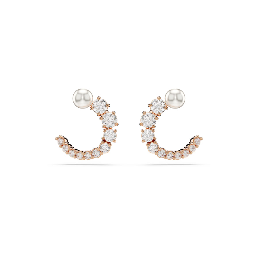 Swarovski Matrix Hoop Earrings, Crystal Pearl, Round Cut, White, Rose Gold-Tone Plated