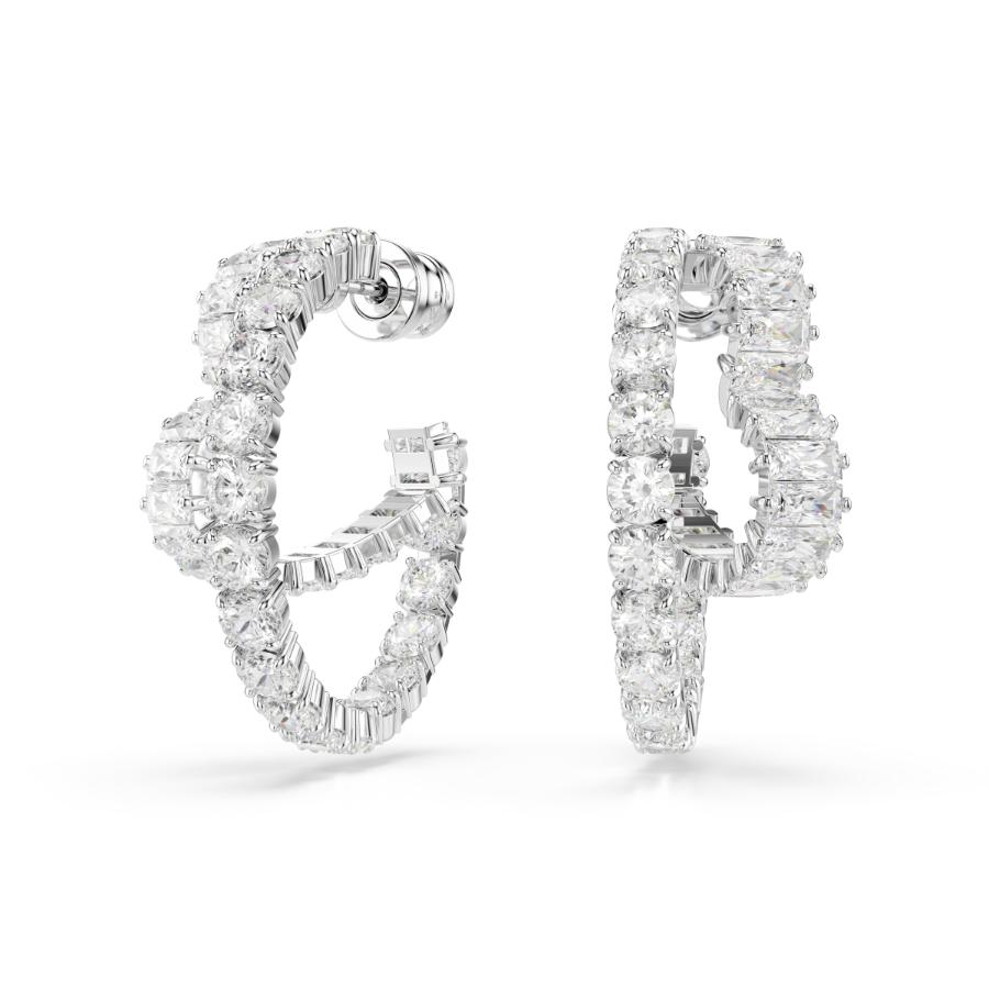 Swarovski Matrix Hoop Earrings, Mixed Cuts, Heart, White, Rhodium Plated