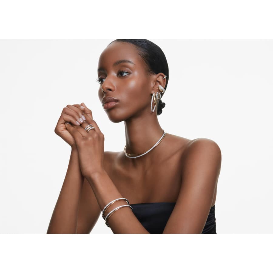 Swarovski Matrix Hoop Earrings, Round Cut, White, Rhodium Plated