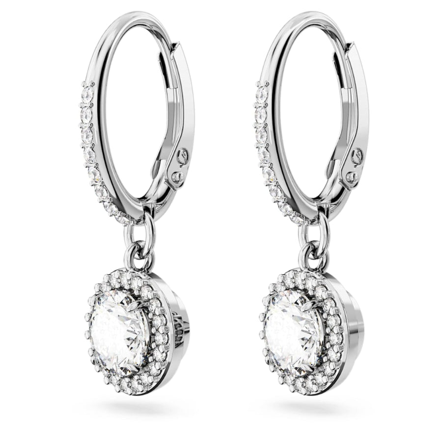 Swarovski Constella Drop Earrings Round Cut, Pavé, White, Rhodium Plated