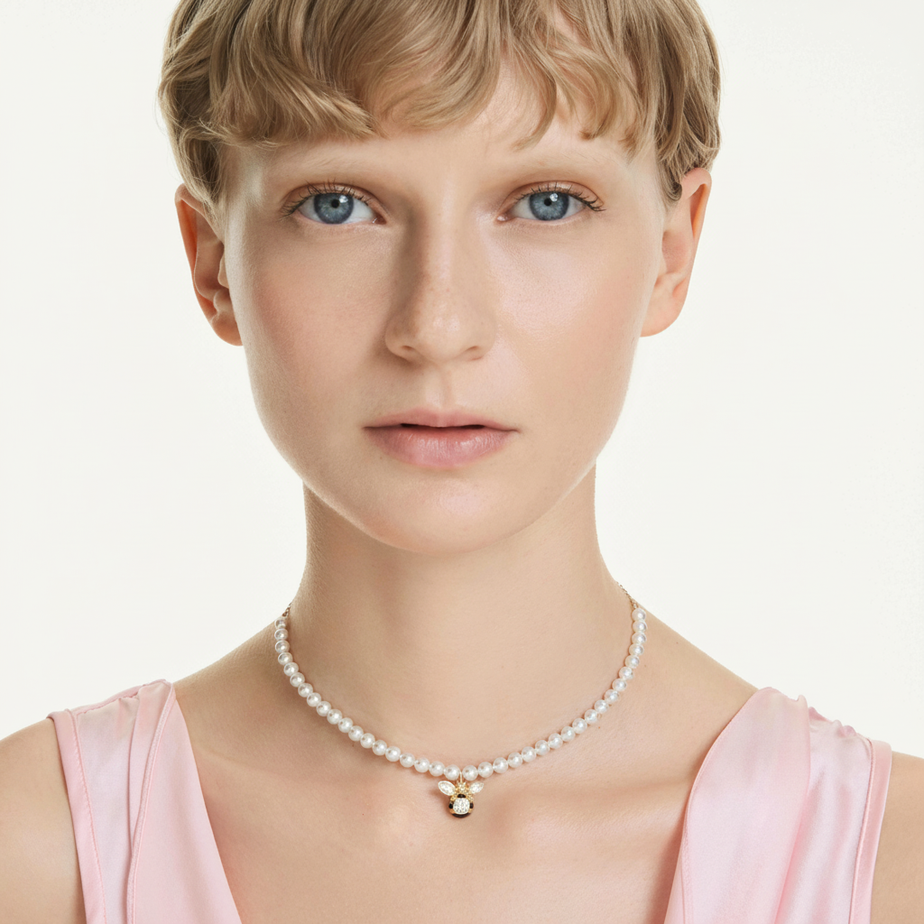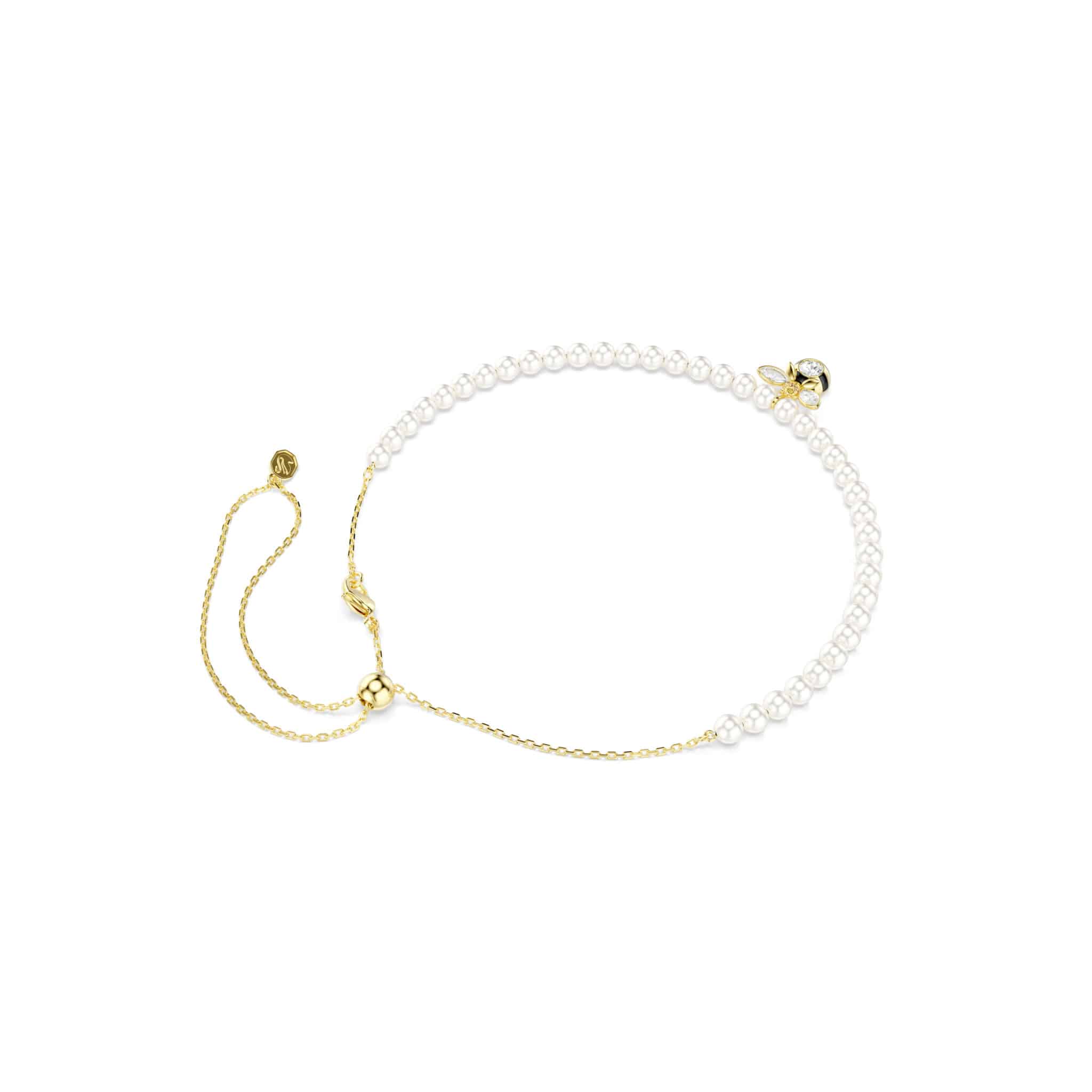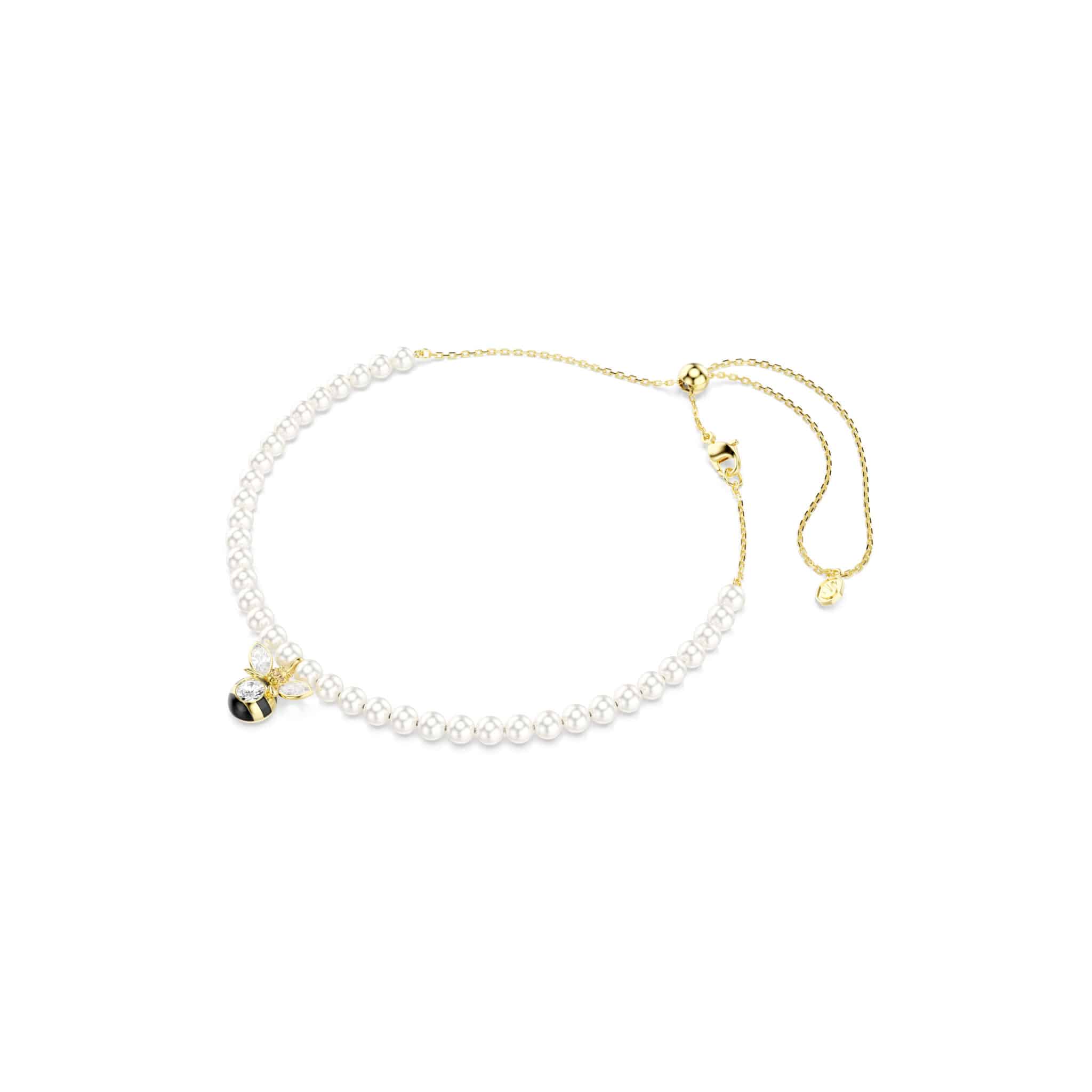 Swarovski Idyllia Choker, Crystal pearl, Mixed cuts, Bee, White, Gold-tone plated