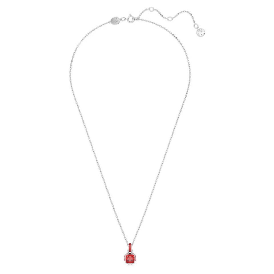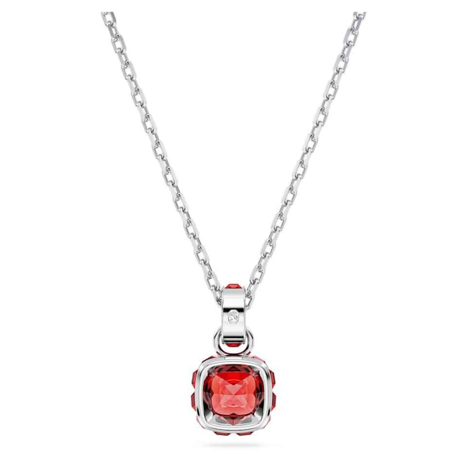 Swarovski Birthstone Pendant, Square Cut, July, Red, Rhodium plated