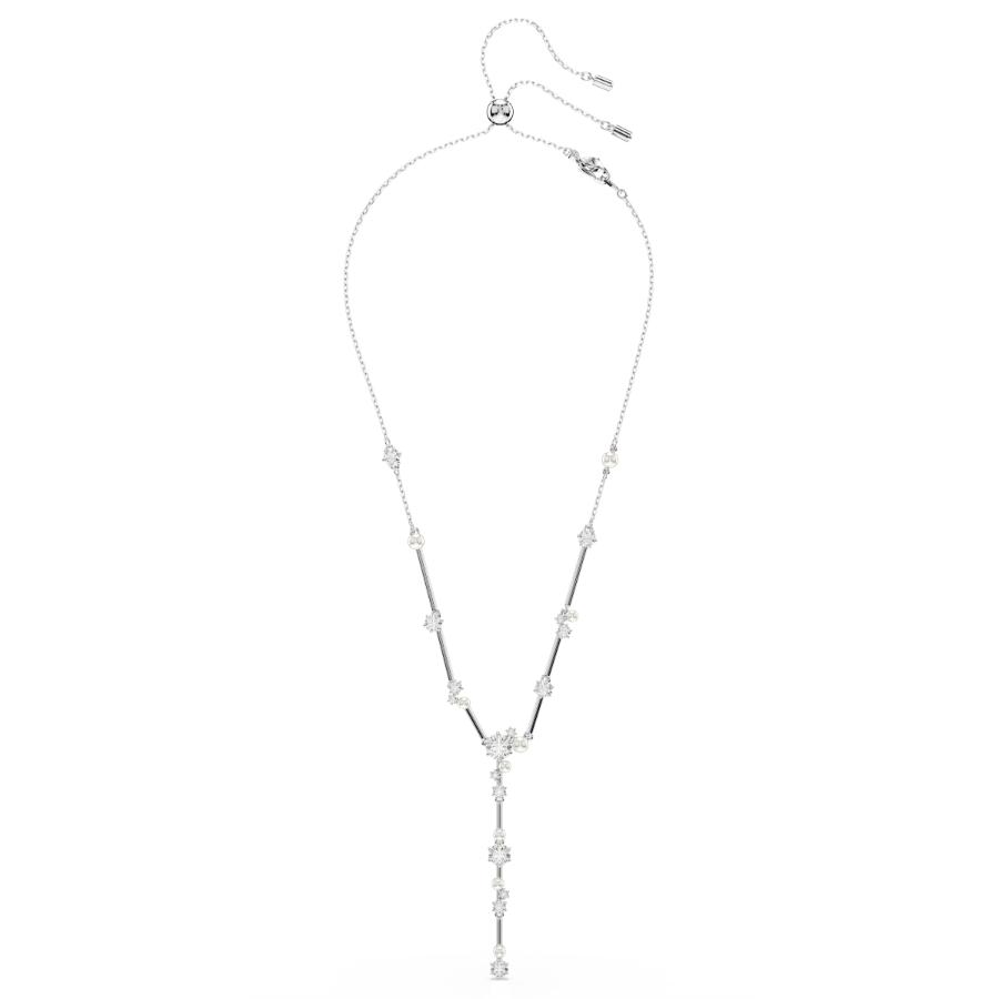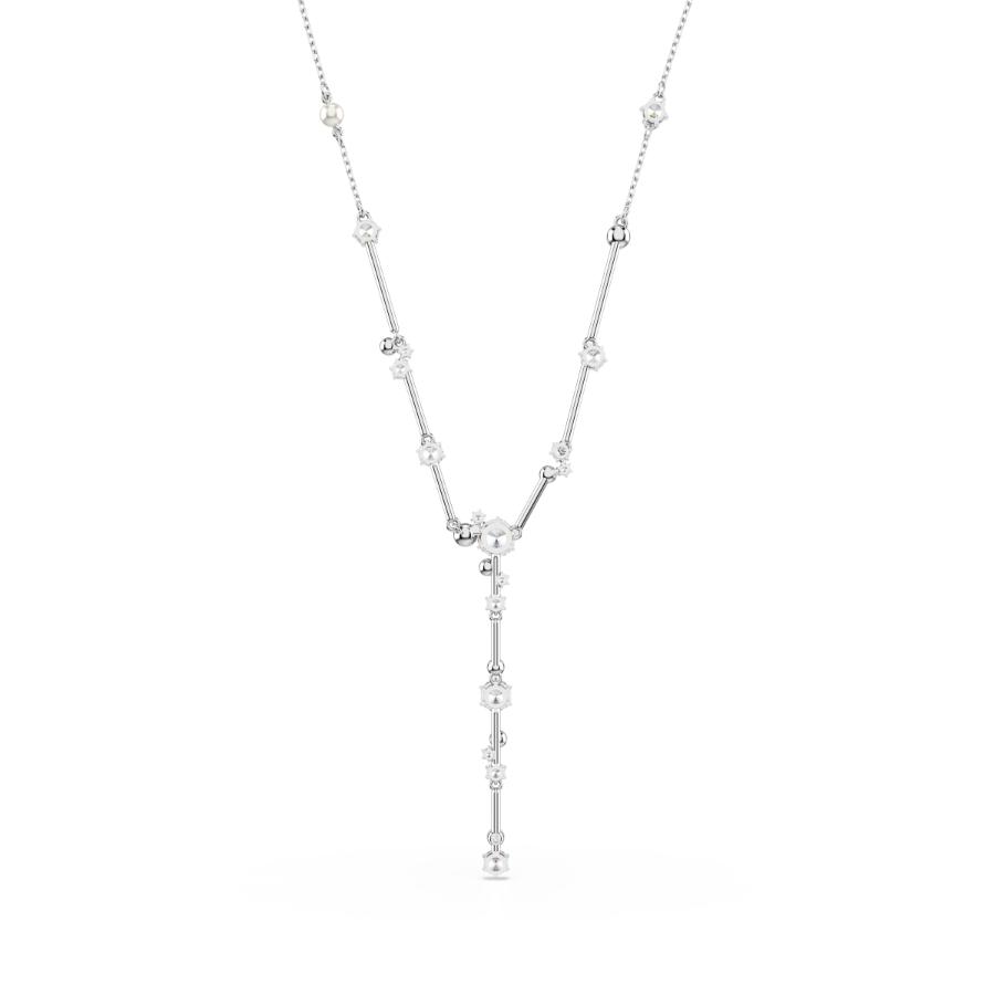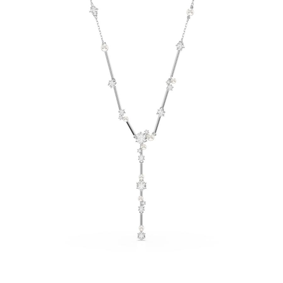 Swarovski Constella Y Necklace, Crystal Pearl, Round Cuts, White, Rhodium Plated