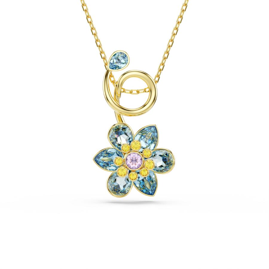 Swarovski Idyllia Pendant, Mixed Cuts, Flower, Blue, Gold-tone Plated
