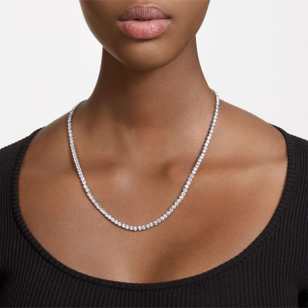 Swarovski Matrix Tennis Necklace, Round Cut, White, Rhodium Plated