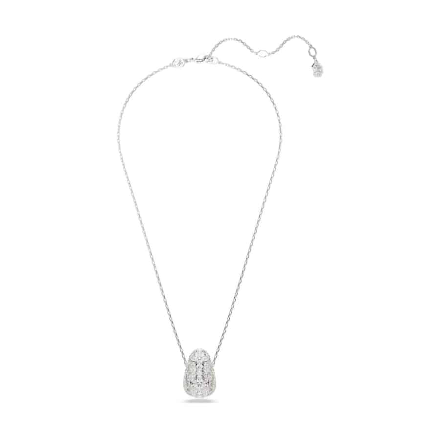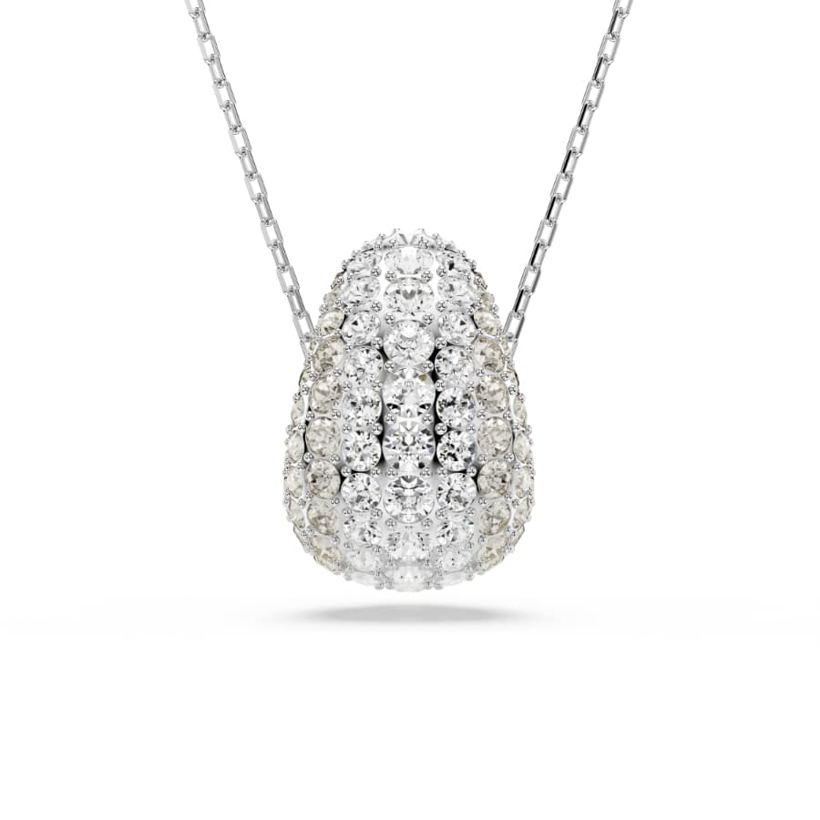 An exquisite example of Swarovski savoir-faire, this Sublima pendant is a powerful centerpiece for any outfit. Suspended from an elegant chain, the rhodium plated motif features a domed metal base for added volume, covered with a pavé of clear crystals. The Meteora pattern, made up of different-sized crystals, dazzles with mesmerizing effect. Wear with similar Sublima pieces to make waves. Length (minimum - maximum): 38 - 45 cm. Motif size: 2.5 x 1.7 cm.