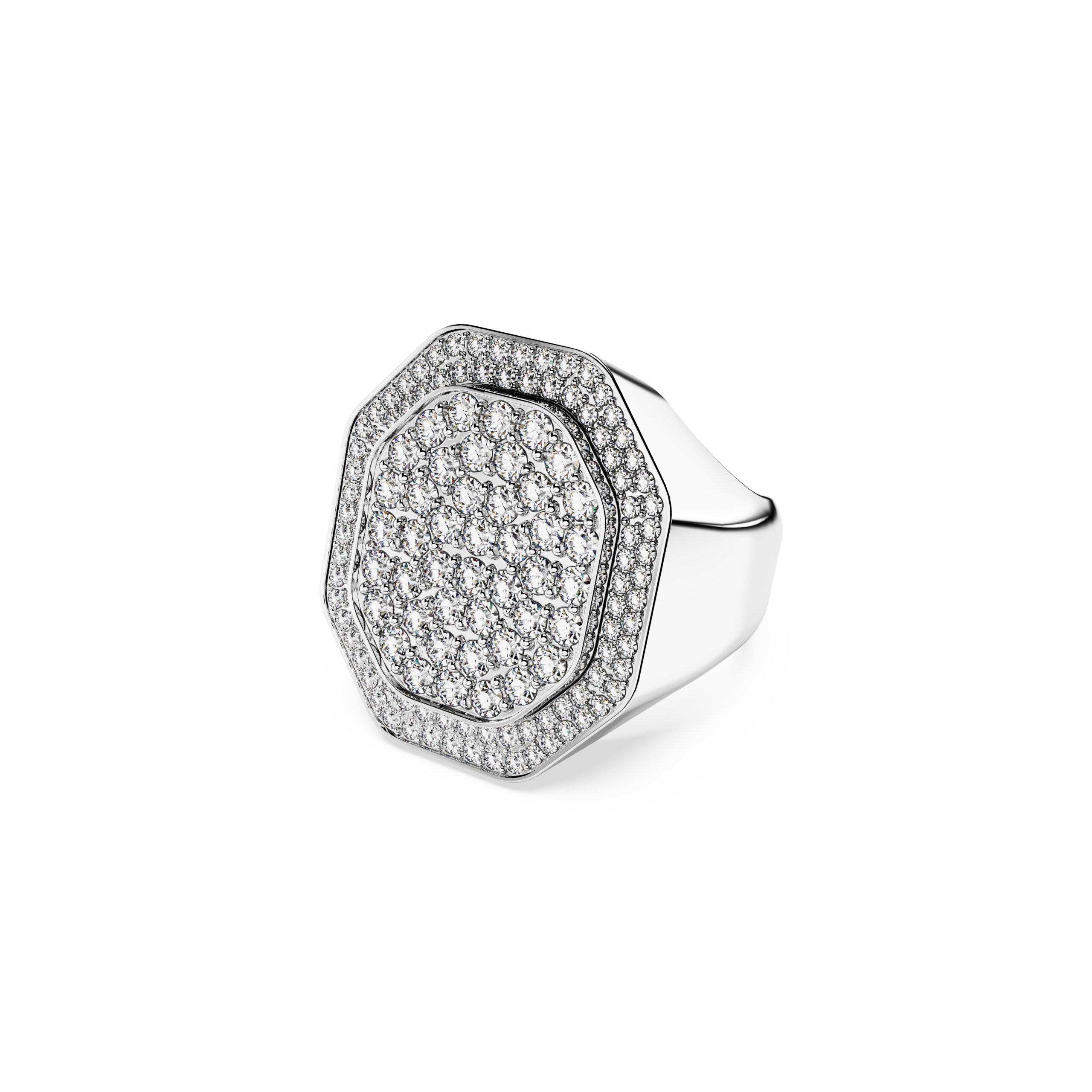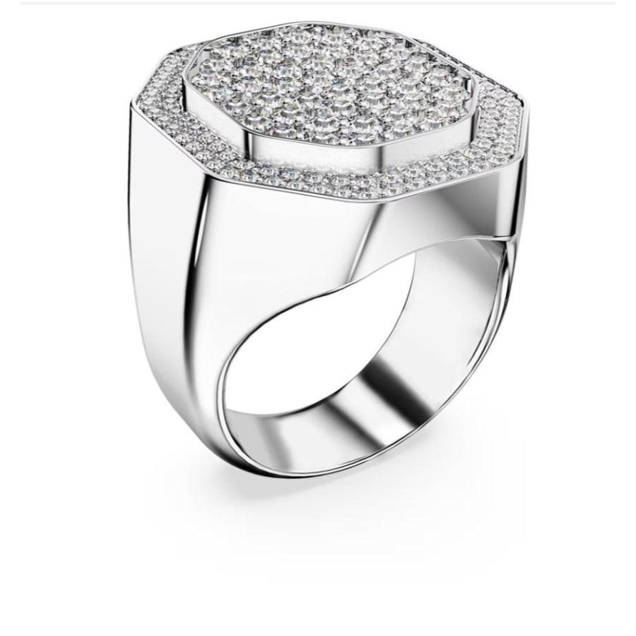 Swarovski Dextera Cocktail Ring Octagon Shape, White, Rhodium Plated