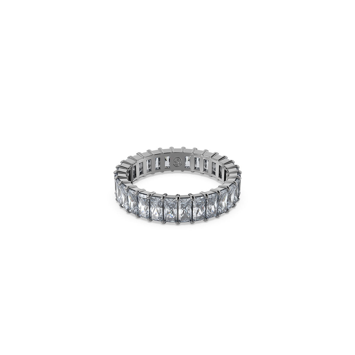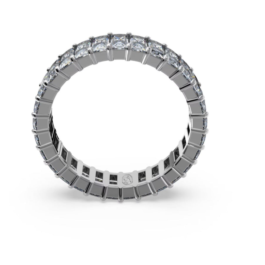 Combining a deep metallic look with eye-catching shine, this Matrix ring will make a versatile addition to your jewelry box. In a process that unites science and magic, grey princess baguette-cut stones are set on a ruthenium plated band. A captivating accessory that is perfect for stacking, allowing multiple combinations for all occasions.