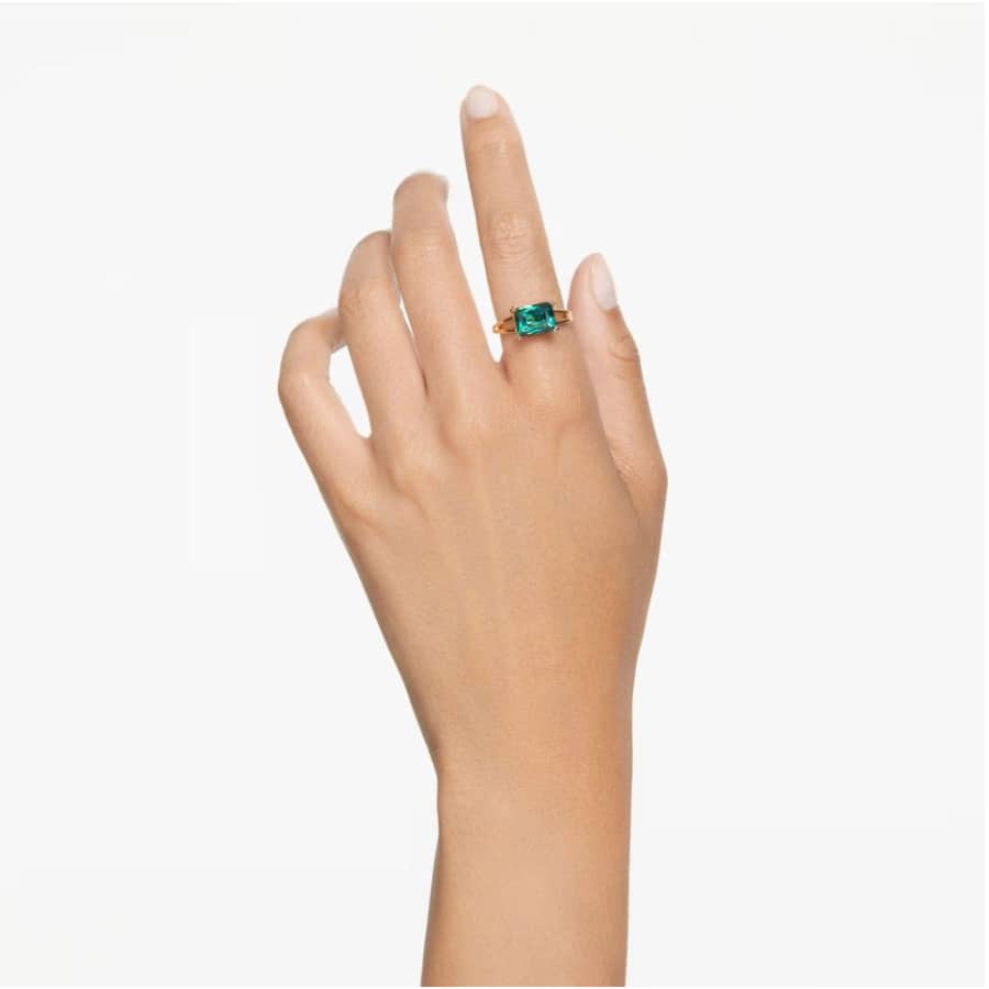 Swarovski Matrix Cocktail Ring Rectangular Cut, Green, Gold-Tone Plated