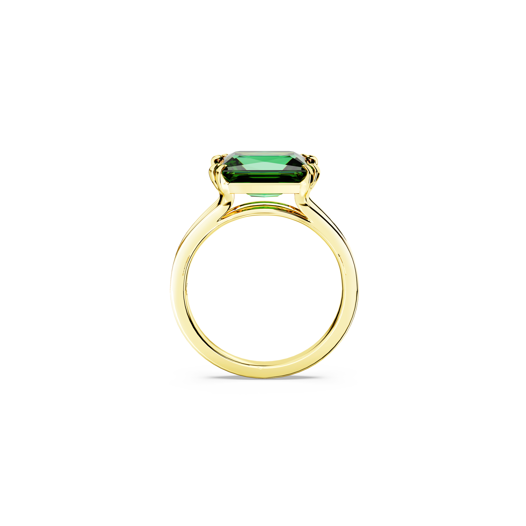 This Matrix ring has a modern twist thanks to a verdant flourish of green. Crafted with gold-tone plating, the refined band is adorned with a rectangular Swarovski Zirconia in an energizing emerald hue, held in place by an elegant double prong setting. A contemporary choice that exudes natural beauty.