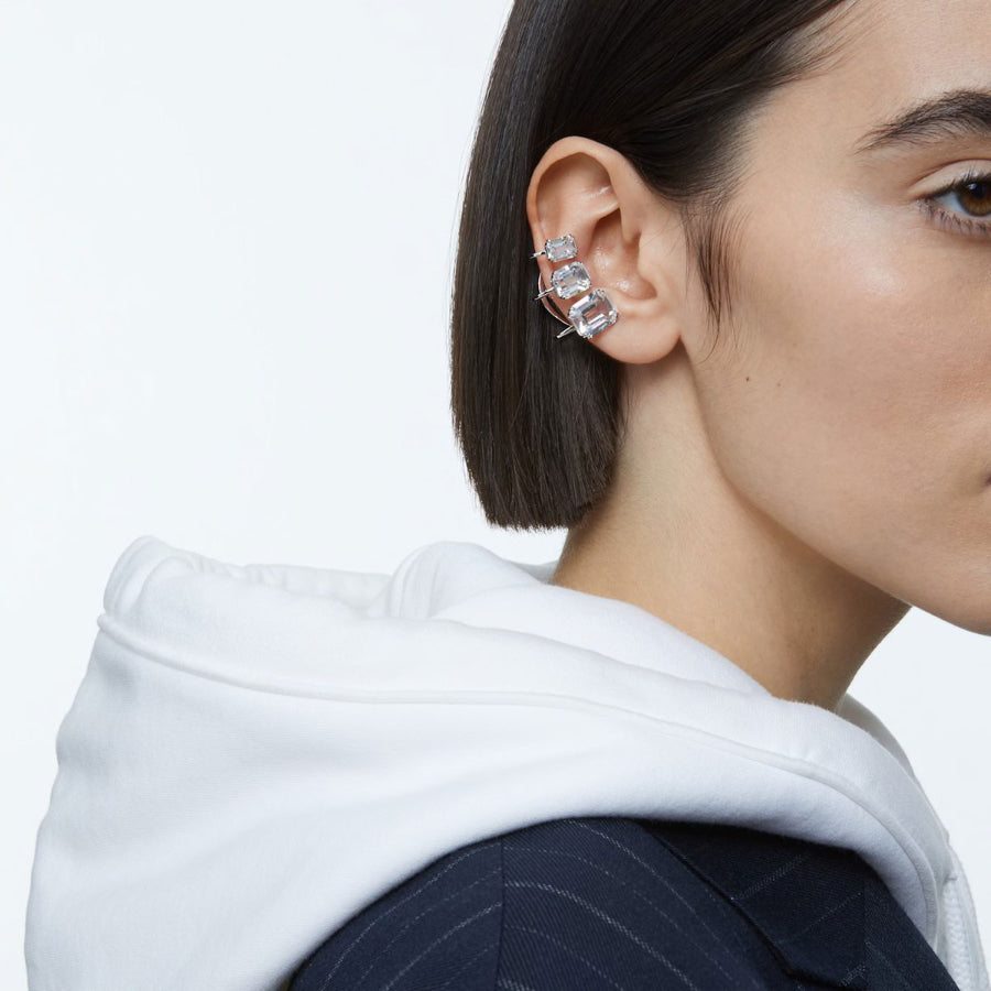 Swarovski Millenia Ear Cuff, Single, Octagon Cut Crystal, White, Rhodium Plated