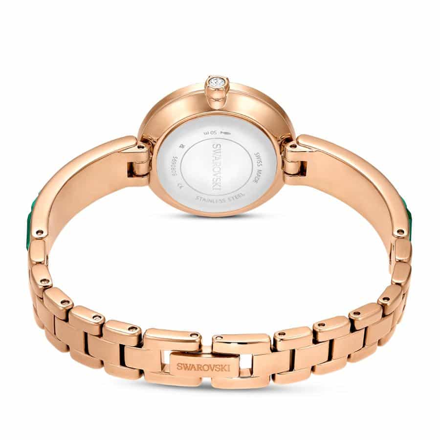 Swarovski Matrix Bangle Watch, Swiss Made, Crystal Bracelet, Green, Champagne gold-tone Finish