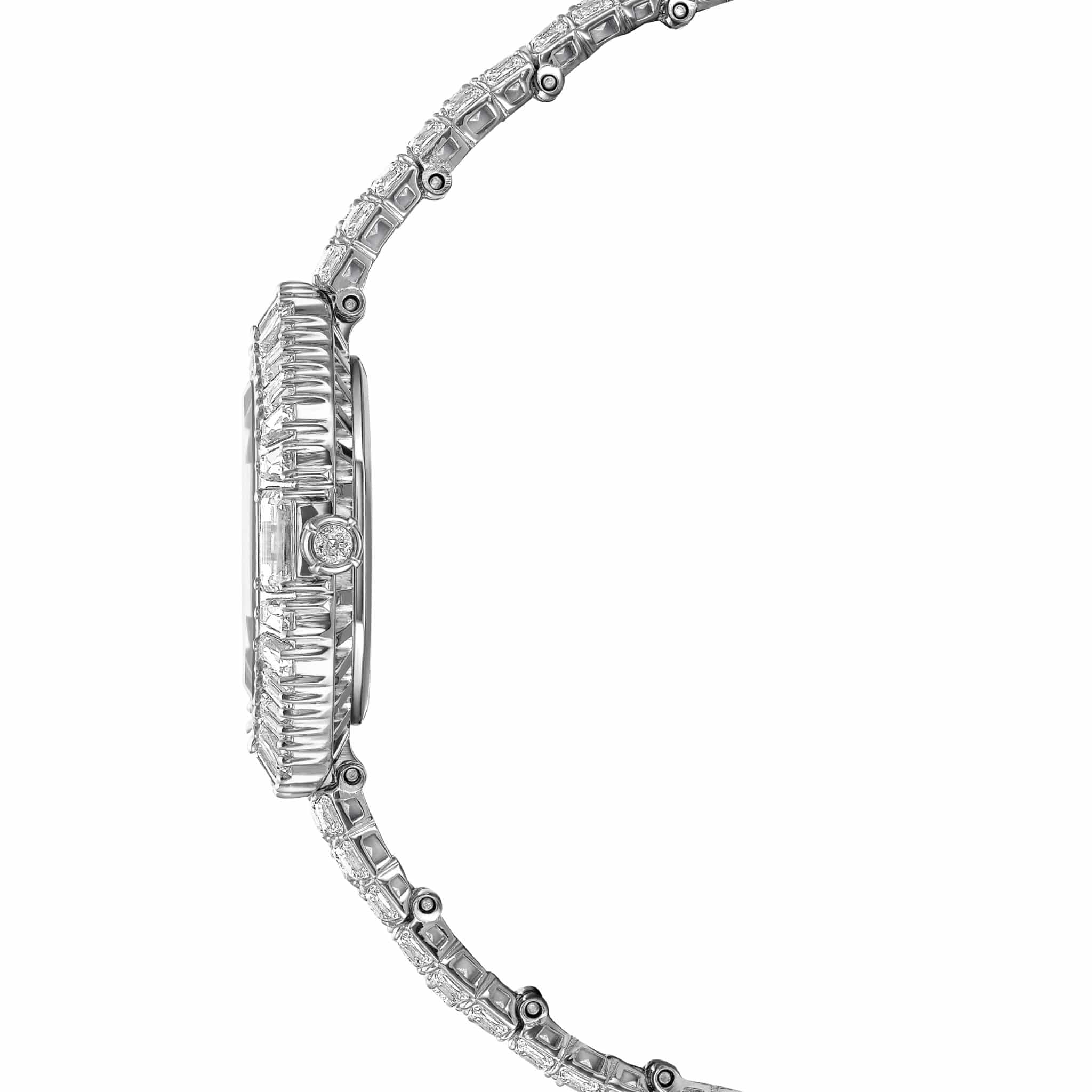 This innovative timepiece is a one-of-a-kind creation that combines signature design with mastery of light. Crafted with genuine savoir-faire, the watch is inspired by the Matrix jewelry family and features a 13 x 18 mm case in stainless steel. The bezel is presented in the House's signature octagon shape and is set with a stunning mix of 78 round and fancy cut crystals and Swarovski Zirconia. This provides a radiant frame for the minimalist sunray dial, which elegantly displays three crystal hour markers and a swan logo. A single crystal is also placed within the crown, while around the wrist, the luxury is heightened further by a radiant bracelet set with 72 Swarovski Zirconia. This watch is water-resistant to 50m and symbolizes Swarovski’s modern luxury at its very finest.
