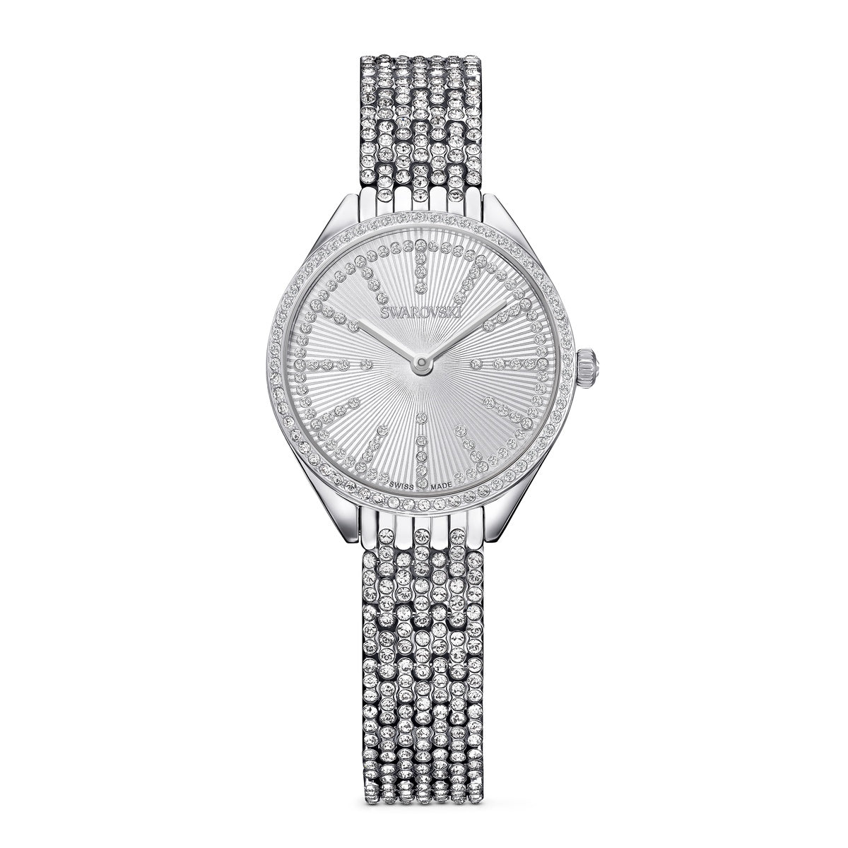 Swarovski Attract watch, Swiss Made, Full pavé, Crystal bracelet, Silver tone
