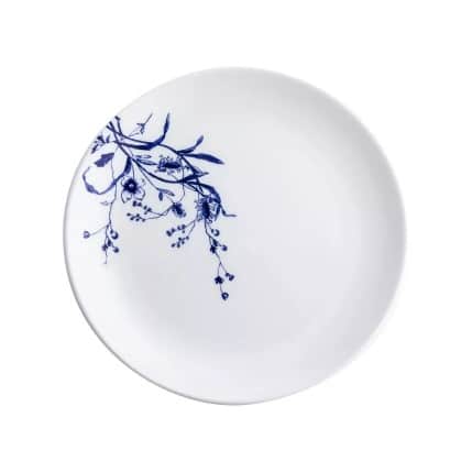 Classic with a subtle eye-catcher: the BLUE BOTANICALS flat coupe 21cm plate is made from first-class Bone China and finished with a floral print. Running dynamically along one side of the plate from the edge to the center, the motif in elegant blue brings timeless elegance to the plate.