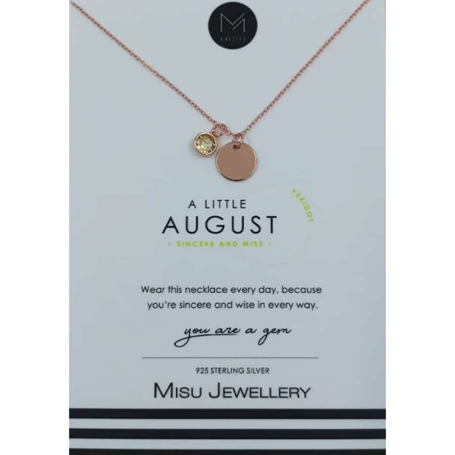 MISU Rose Gold Necklace Birth Month Aug-Peridot