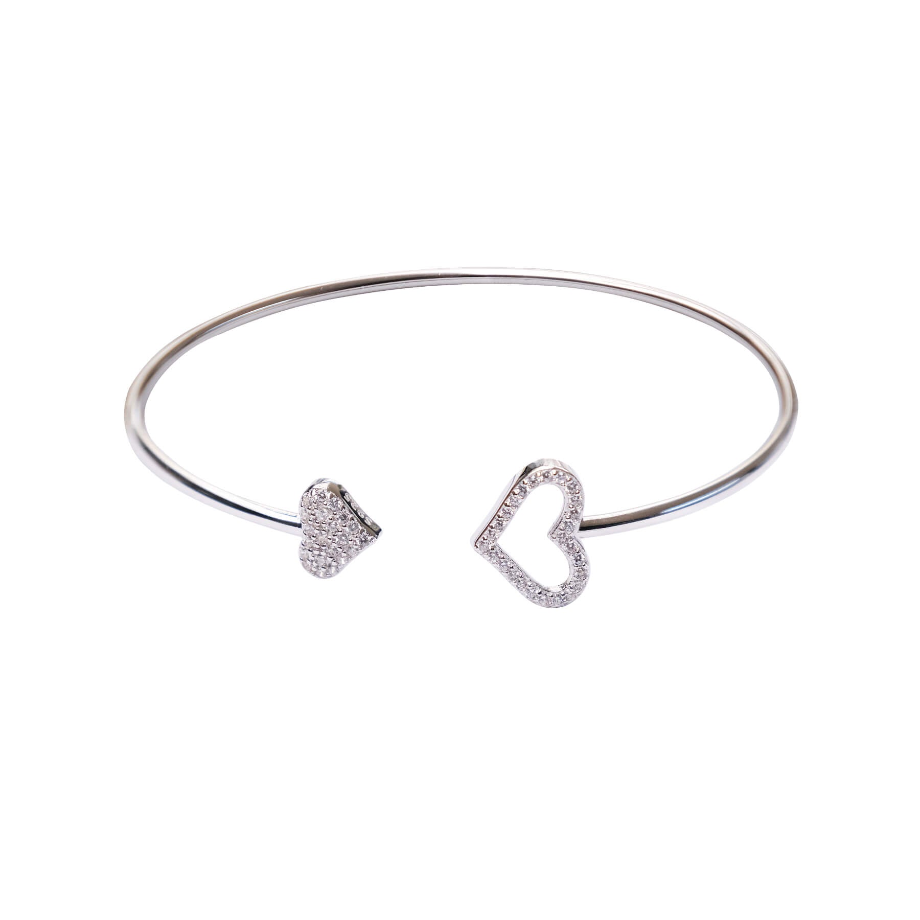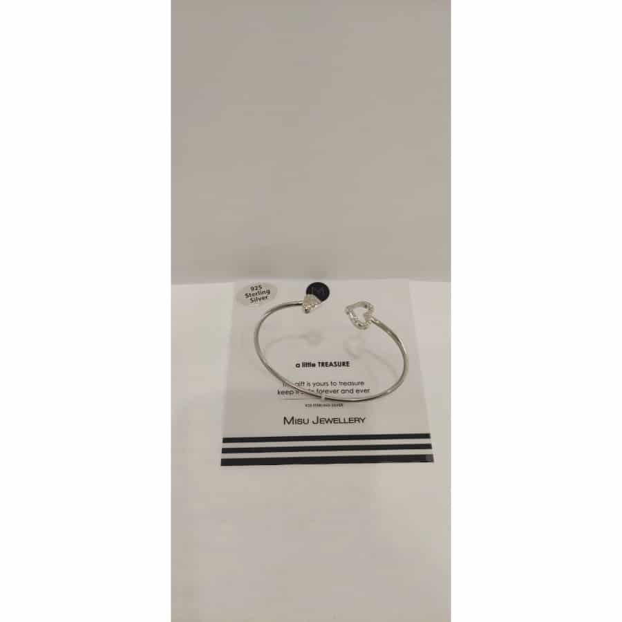MISU 925 Sterling Silver Bracelet Cuff 2 Heart