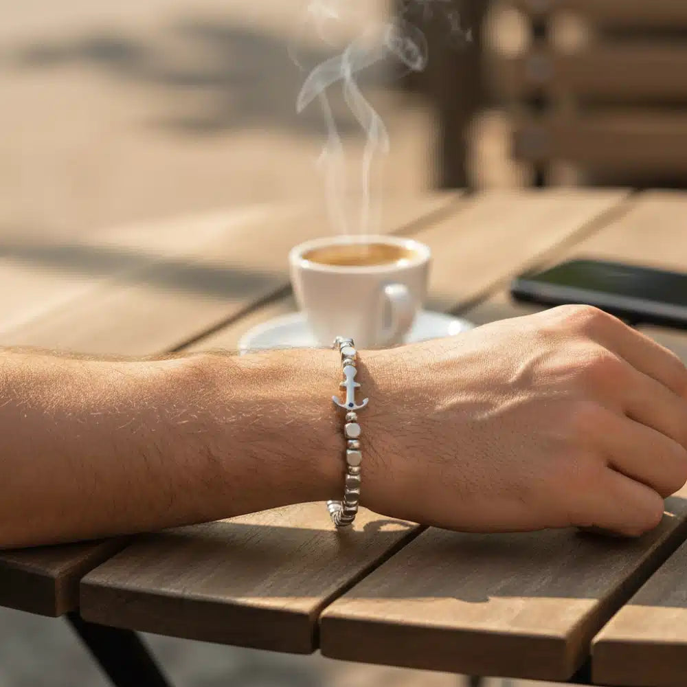 ARZ Matte & Polished Anchor Beaded Bracelet