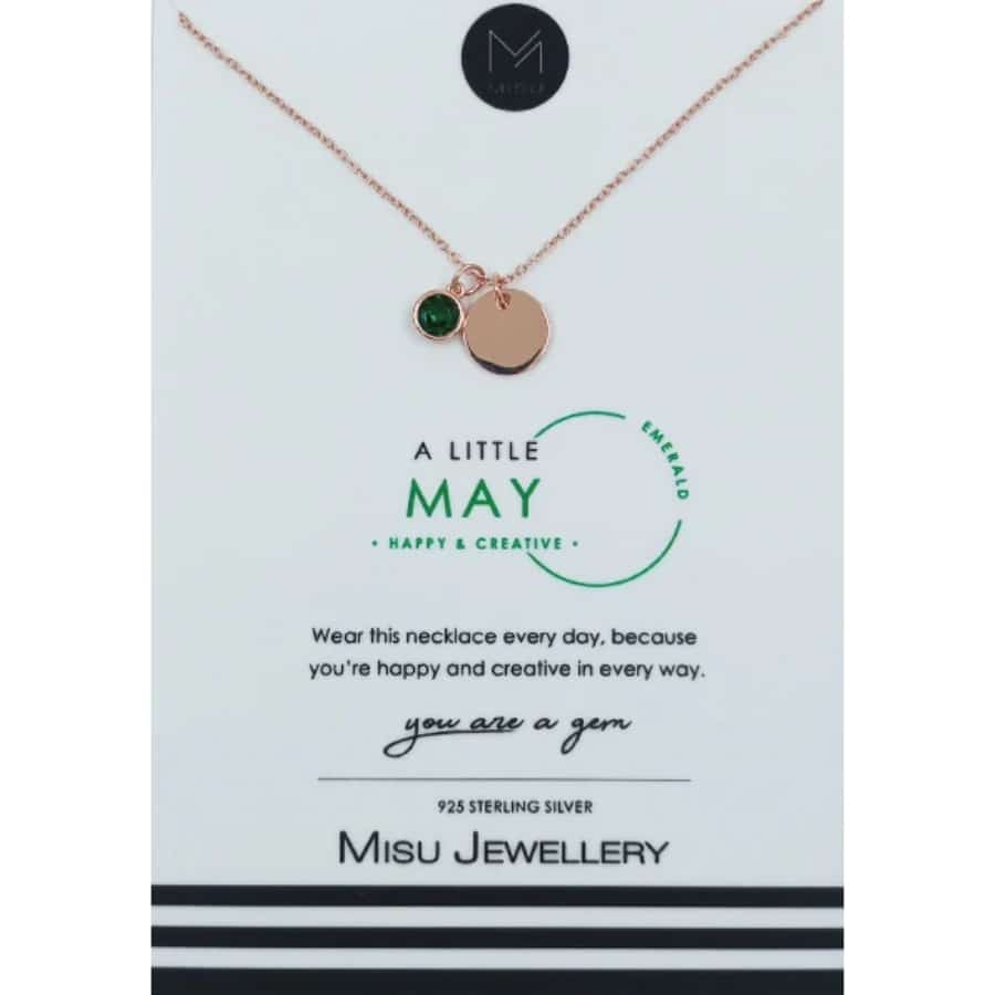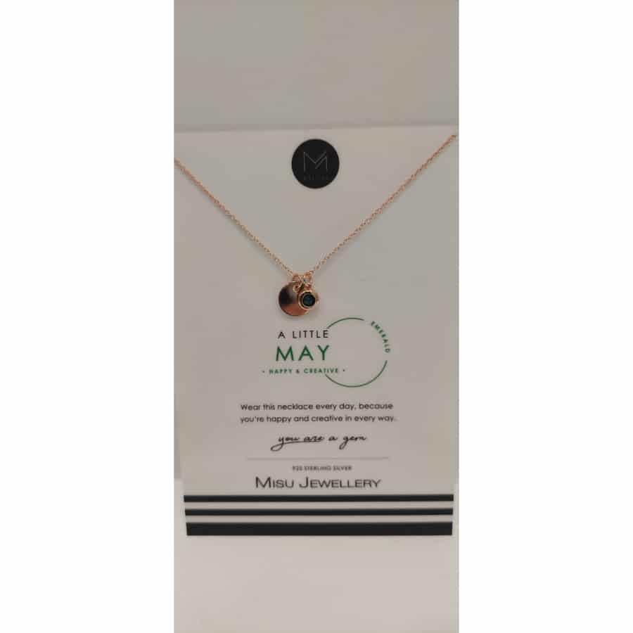 MISU Rose Gold Necklace Birth Month May-Emerald