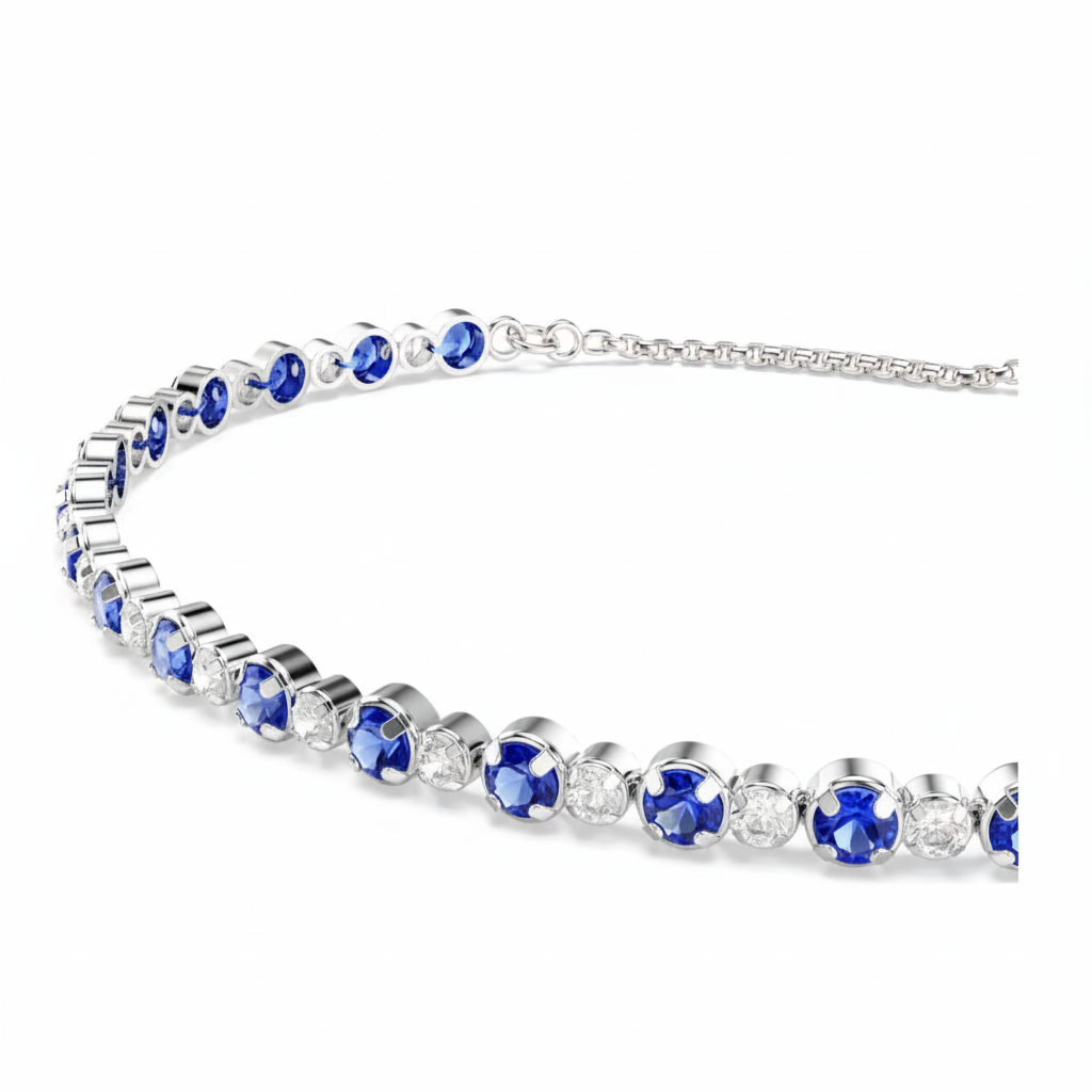 Swarovski Matrix Tennis Bracelet Mixed round cuts, Blue, Rhodium plated